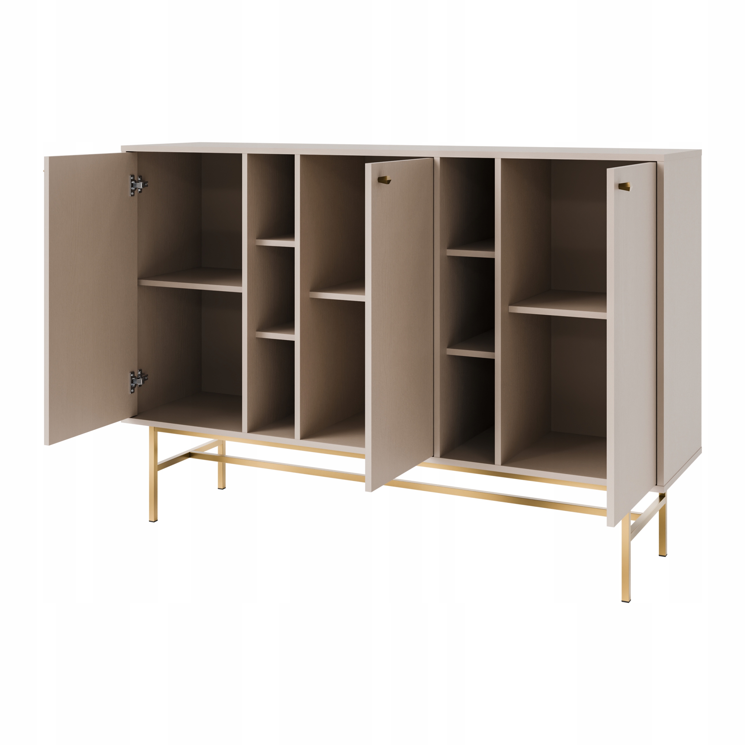 Całość osadzona jest na stelażu w złotym kolorze, które nadają meblowi lekkości i luksusowego charakteru.