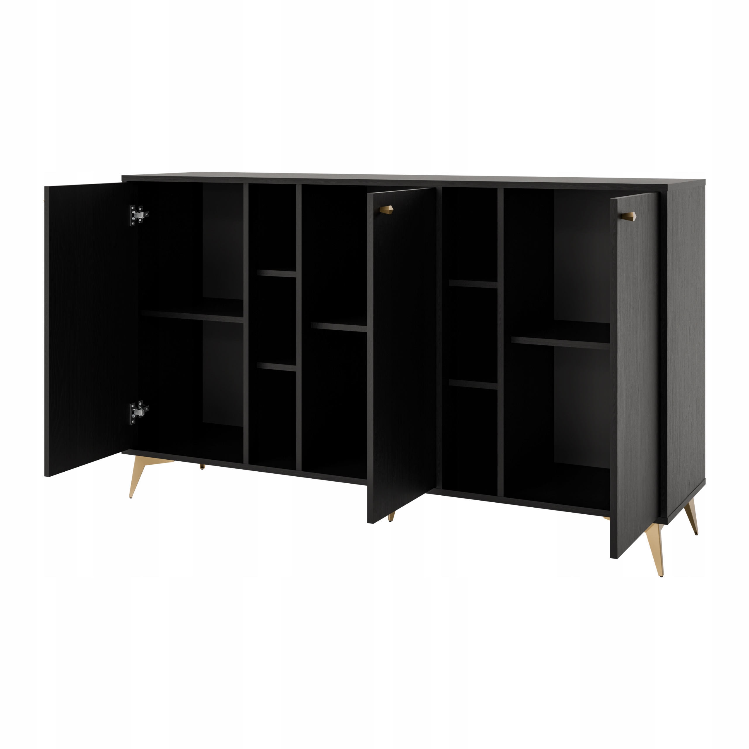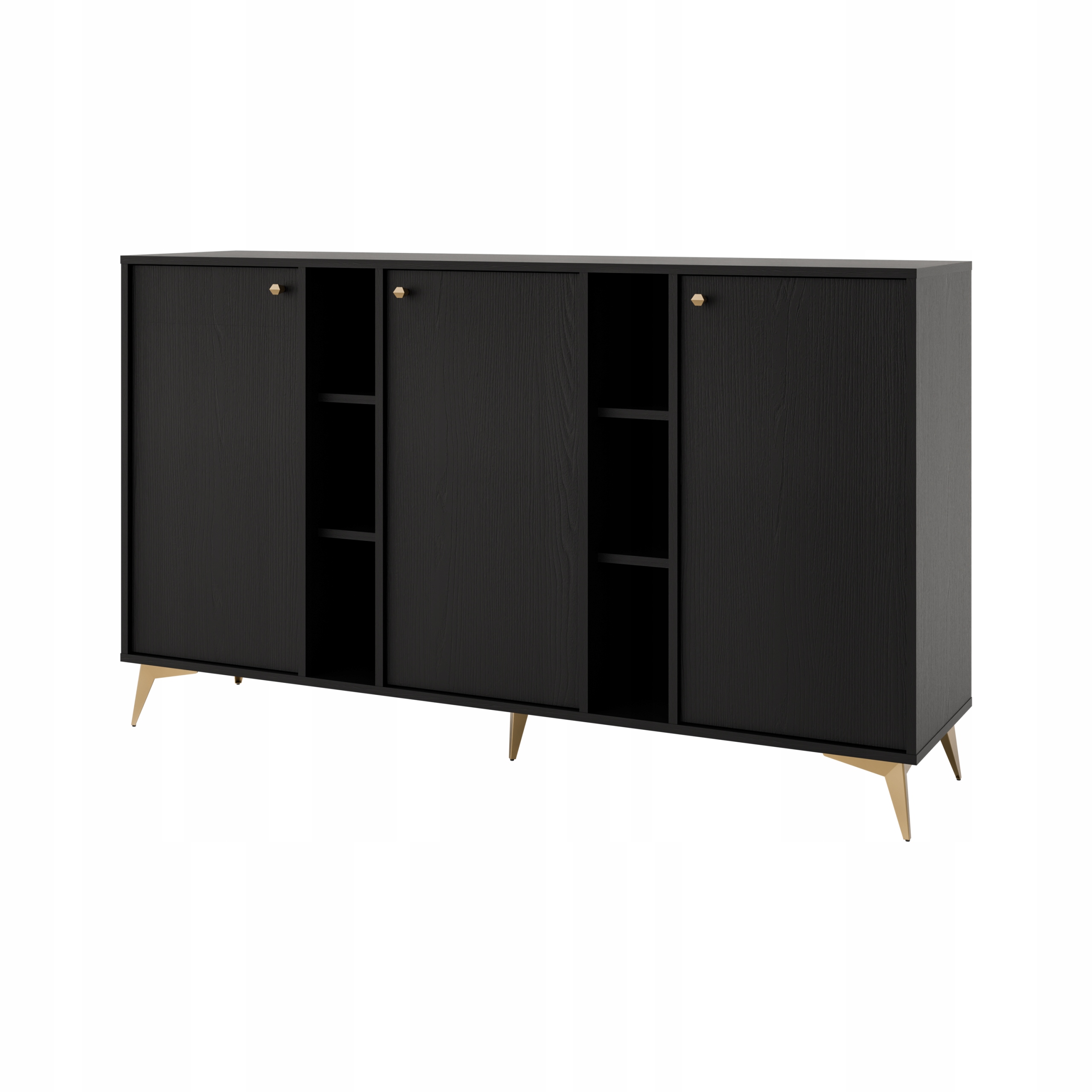 Mebel wyposażony jest w 3 frontowe szafki z półkami oraz wnękami, które mogą posłużyć również jako półki dekoracyjne.