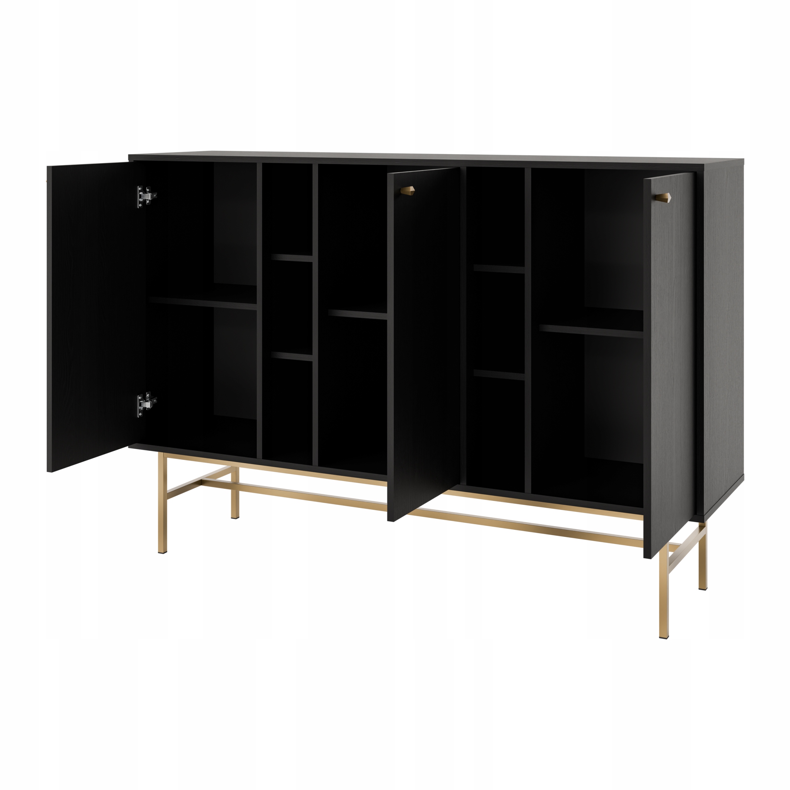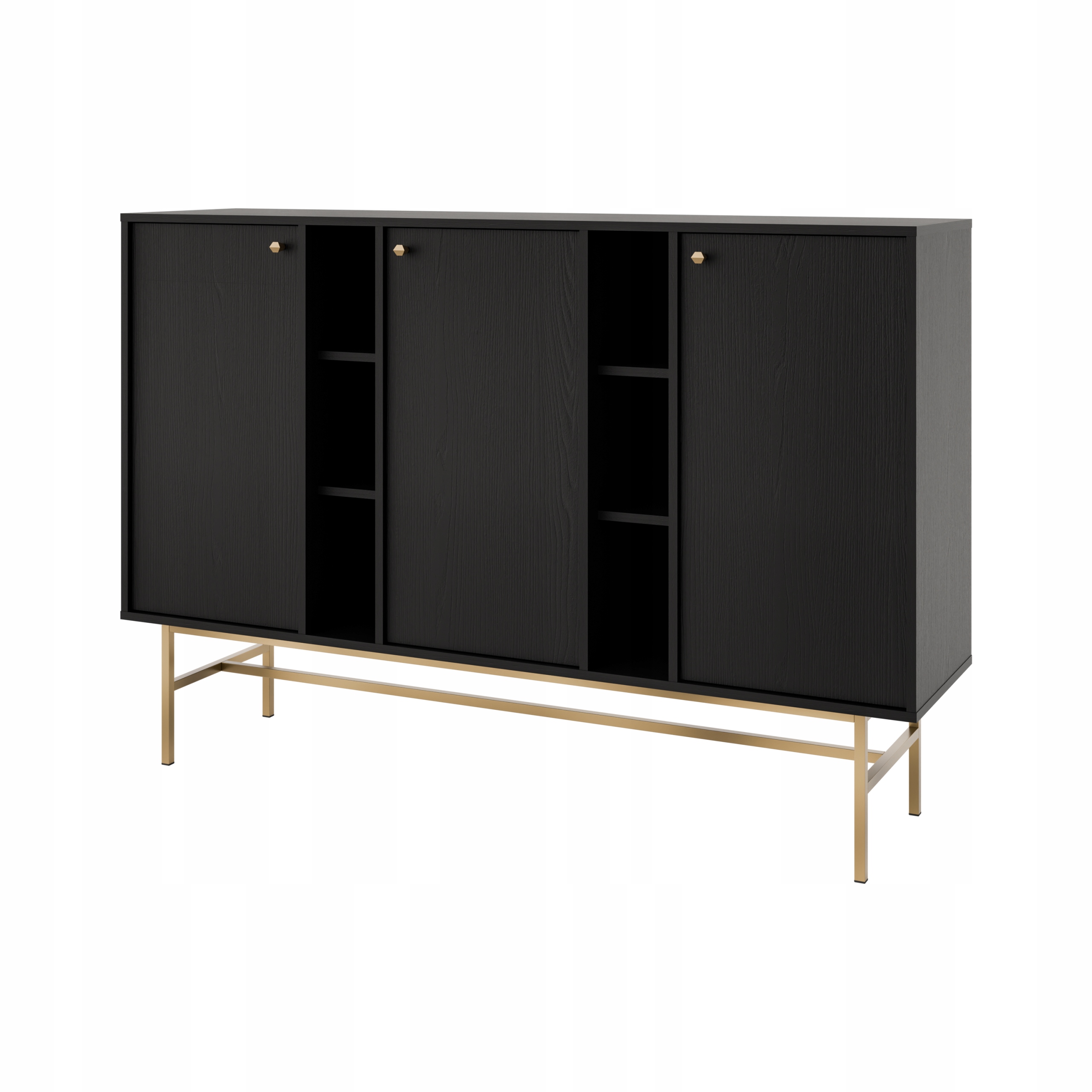 Mebel wyposażony jest w 3 frontowe szafki z półkami oraz wnękami, które mogą posłużyć również jako półki dekoracyjne.