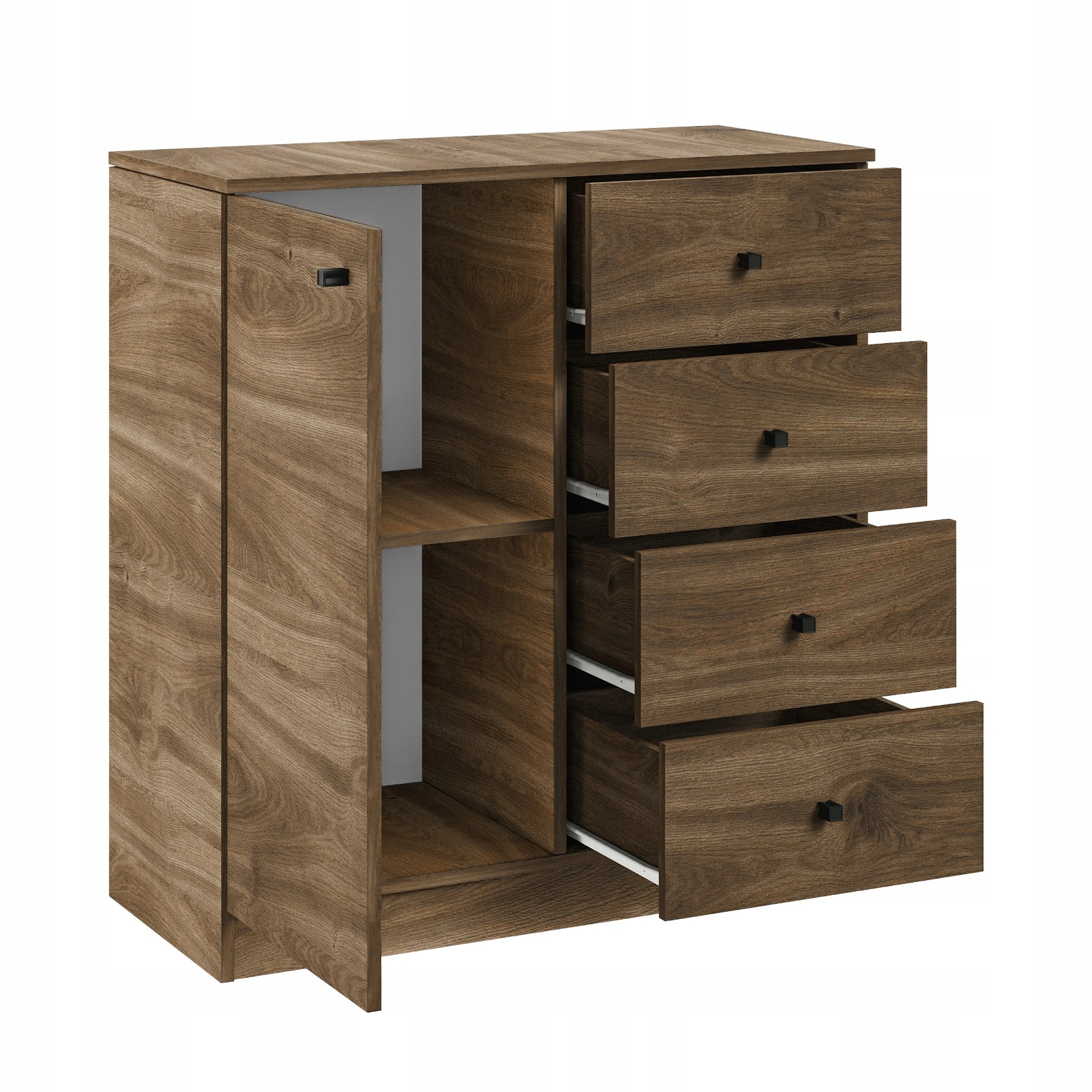 - drzwi uchylne oraz cztery szuflady
