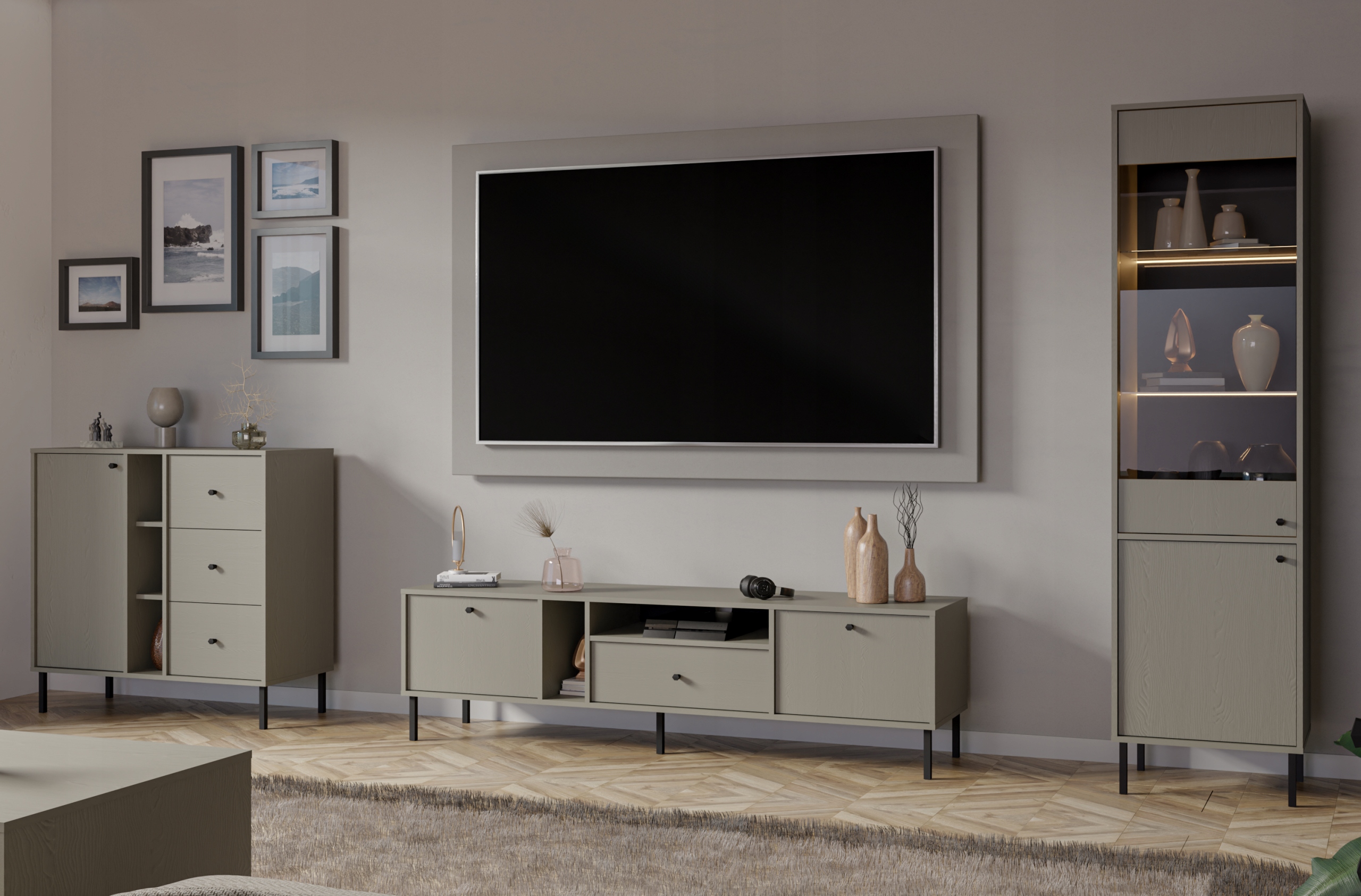 Nowoczesna komoda  to elegancki i funkcjonalny mebel, który doskonale wpisuje się we współczesne aranżacje wnętrz. Utrzymana w jasnej, neutralnej kolorystyce prezentuje się lekko i subtelnie, a jej minimalistyczna forma podkreśla nowoczesny charakter.