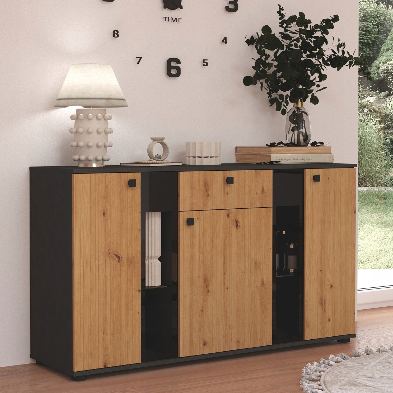 Komoda SILVO lamele dąb artisan biały matera do salonu pokoju kredens