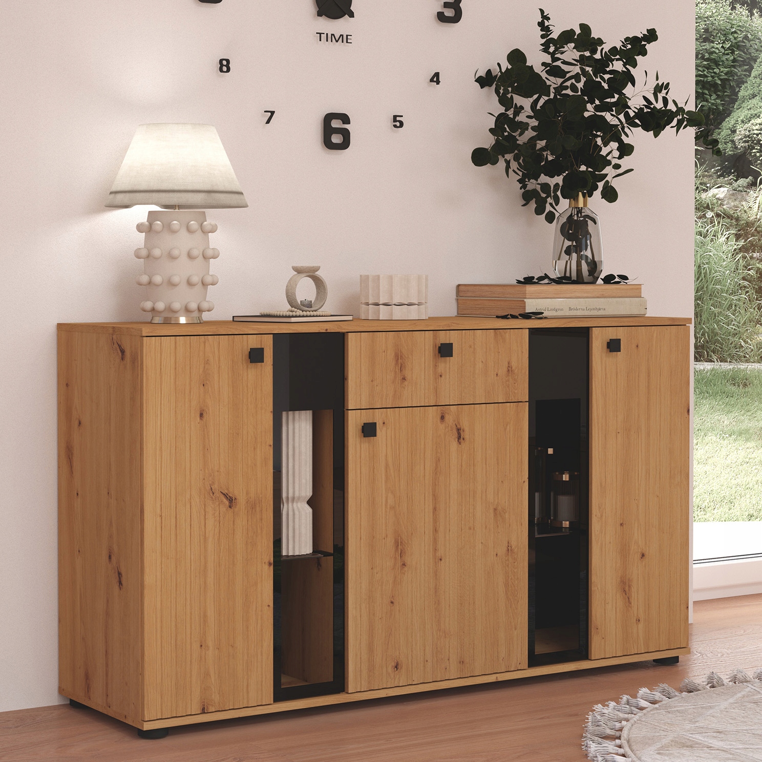 Komoda SILVO lamele dąb artisan biały matera do salonu pokoju kredens