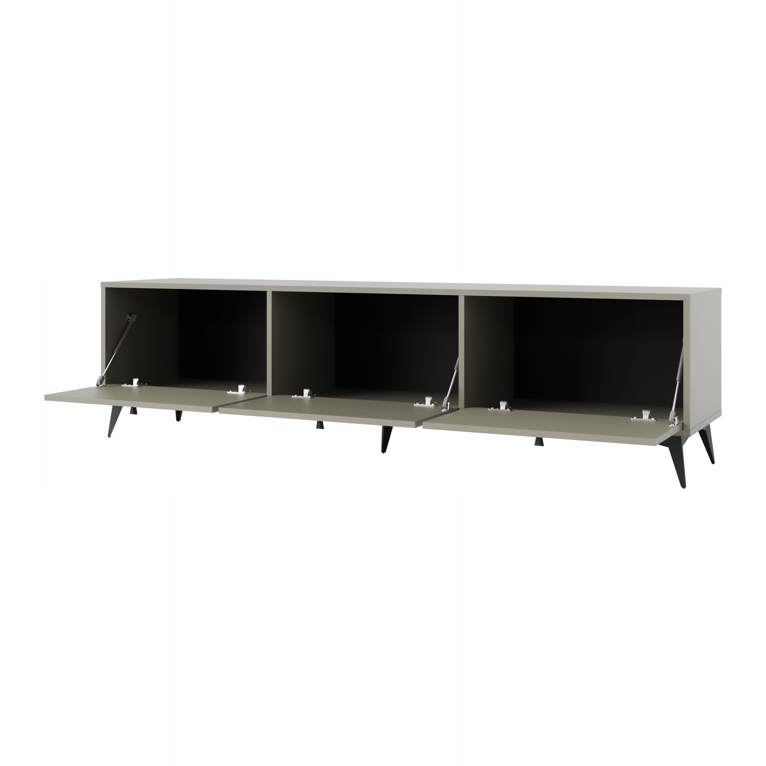 Nowoczesna komoda  RTV to elegancki i funkcjonalny mebel, który doskonale wpisuje się we współczesne aranżacje wnętrz. Utrzymana w jasnej, neutralnej kolorystyce prezentuje się lekko i subtelnie, a jej minimalistyczna forma podkreśla nowoczesny charakter.