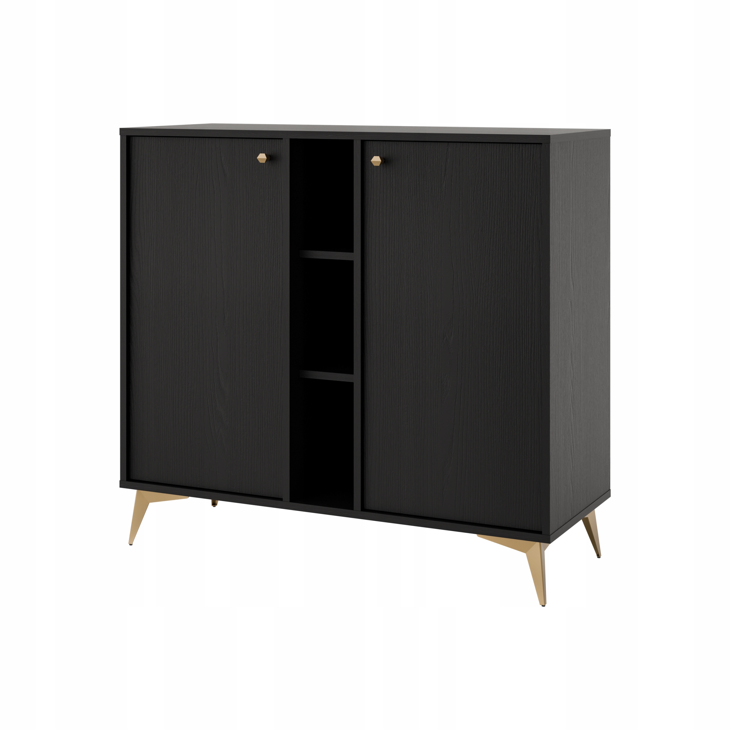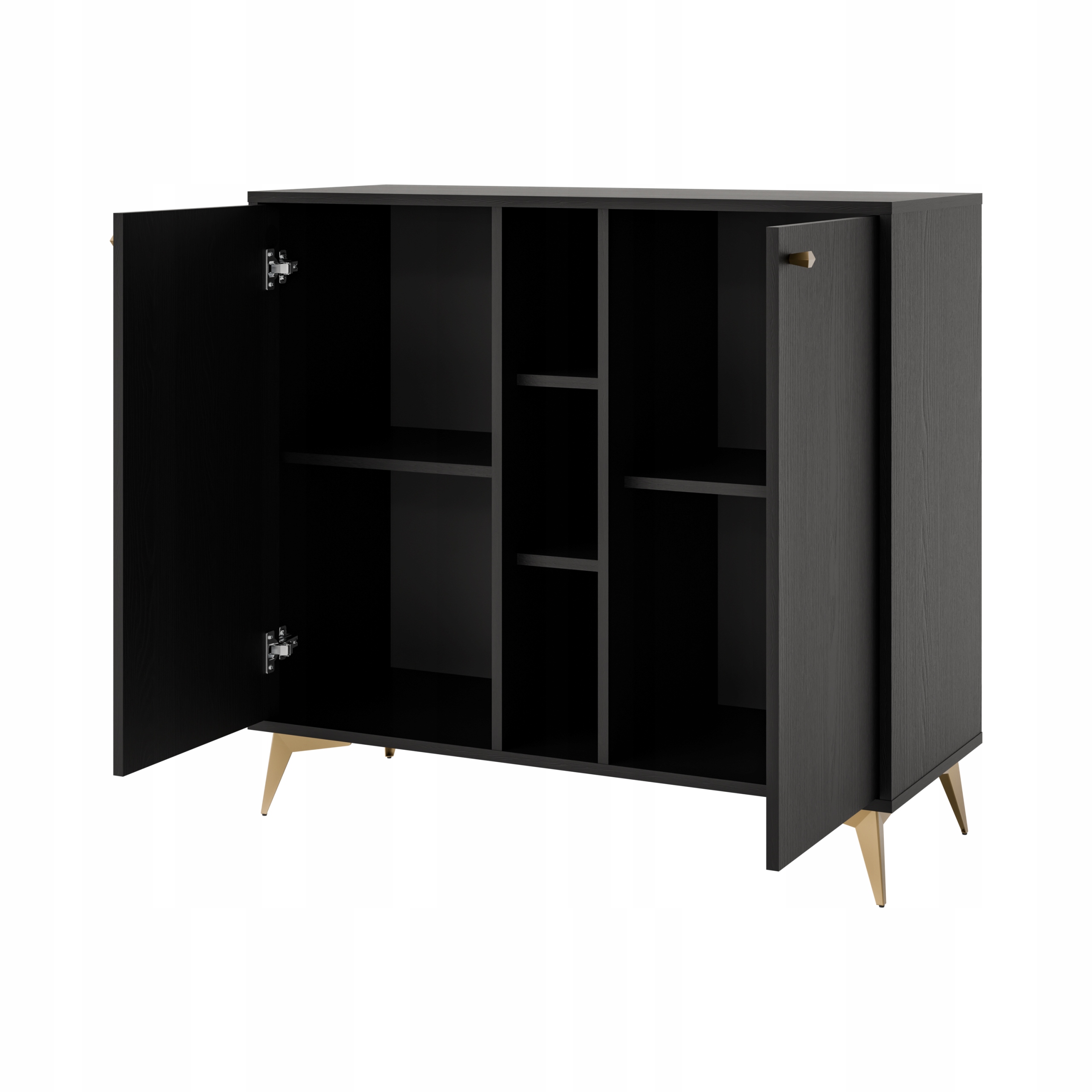 Całość osadzona jest na stylowych, smukłych nogach w złotym kolorze, które nadają meblowi lekkości i luksusowego charakteru.