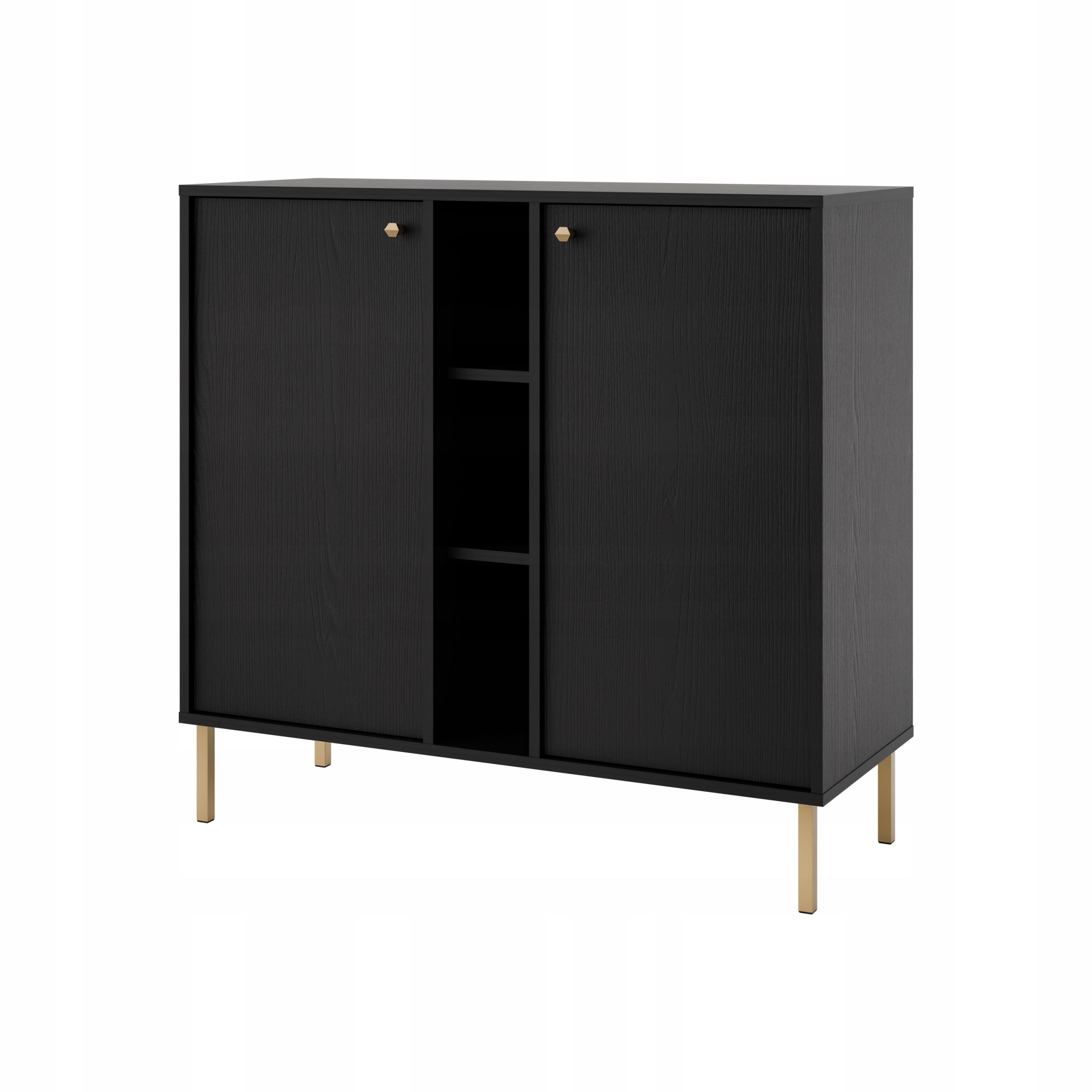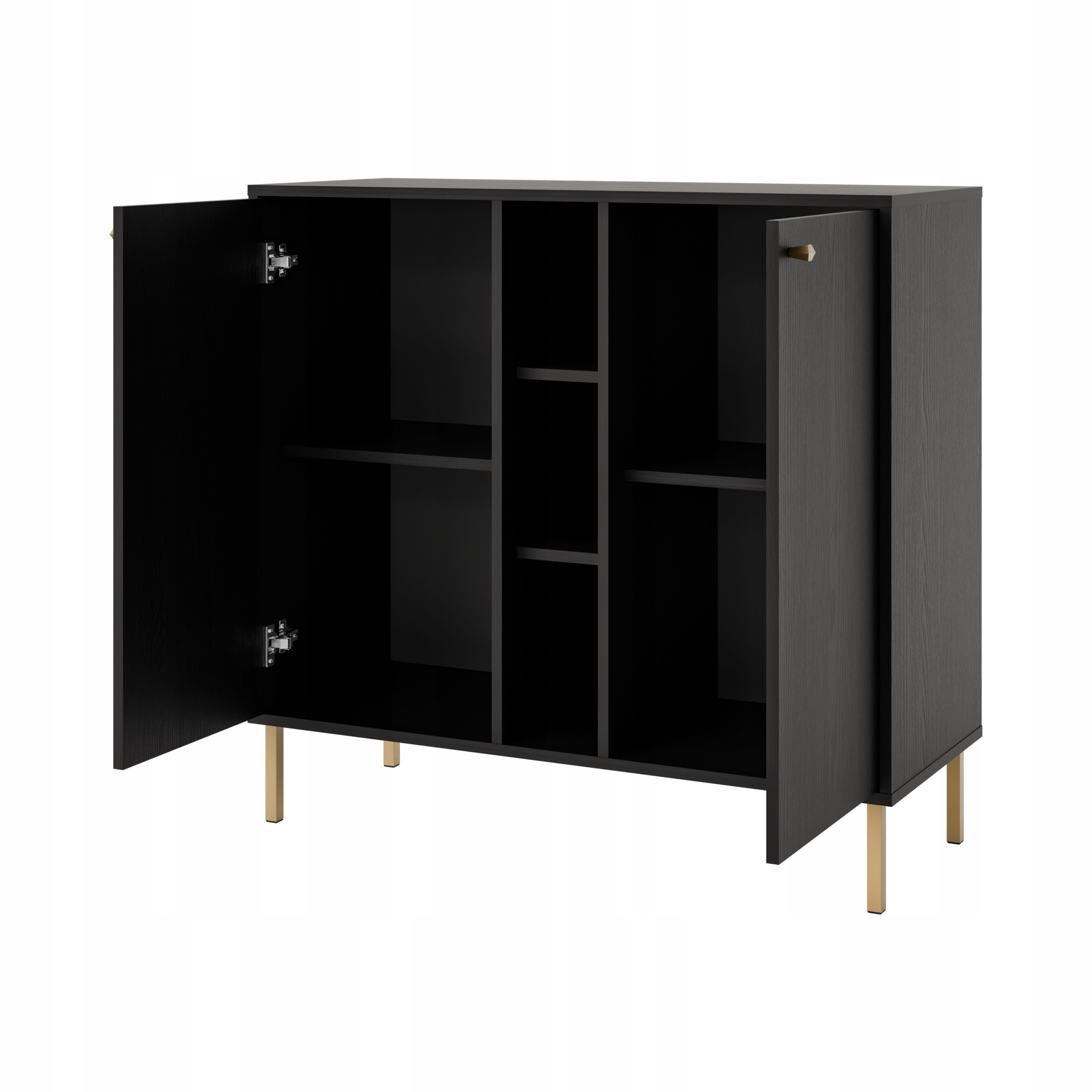 KOMODA SZAFKA Z PÓŁKAMI CZARNY GRAFIT salon jadalnia LUNA L822 NOGA PROSTA