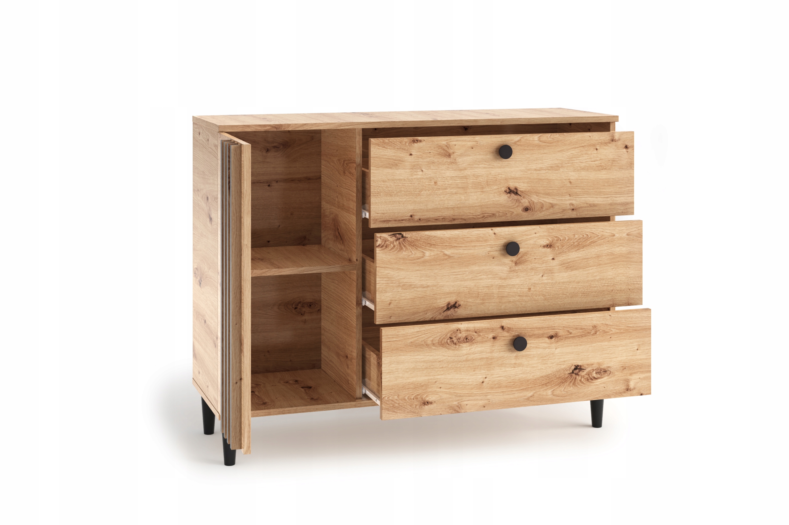 Komoda z lamelami 120 LUENA L03 do salonu pokoju Dąb Artisan