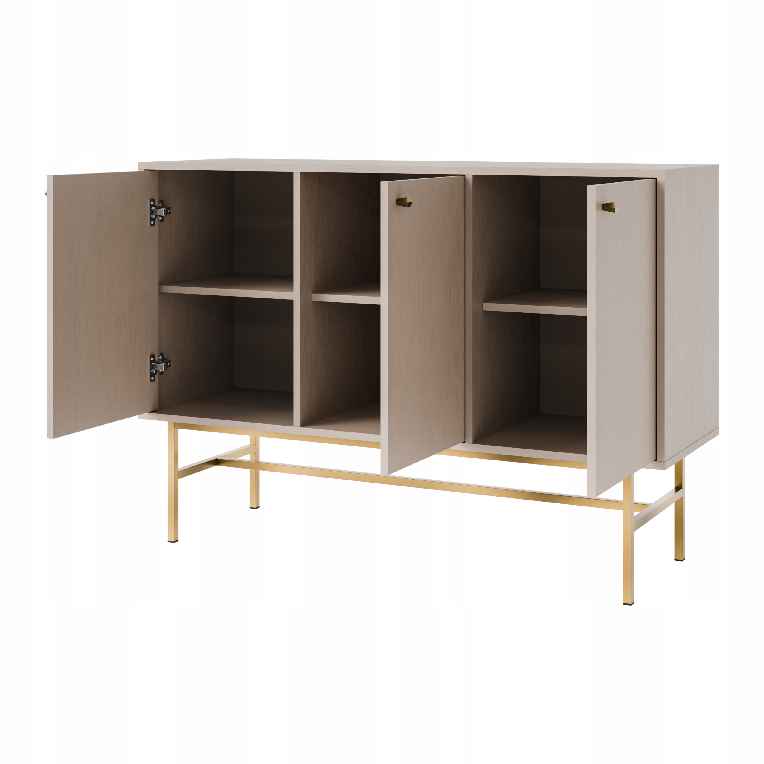 Całość osadzona jest na stelażu w złotym kolorze, który nadaje meblowi lekkości i luksusowego charakteru.