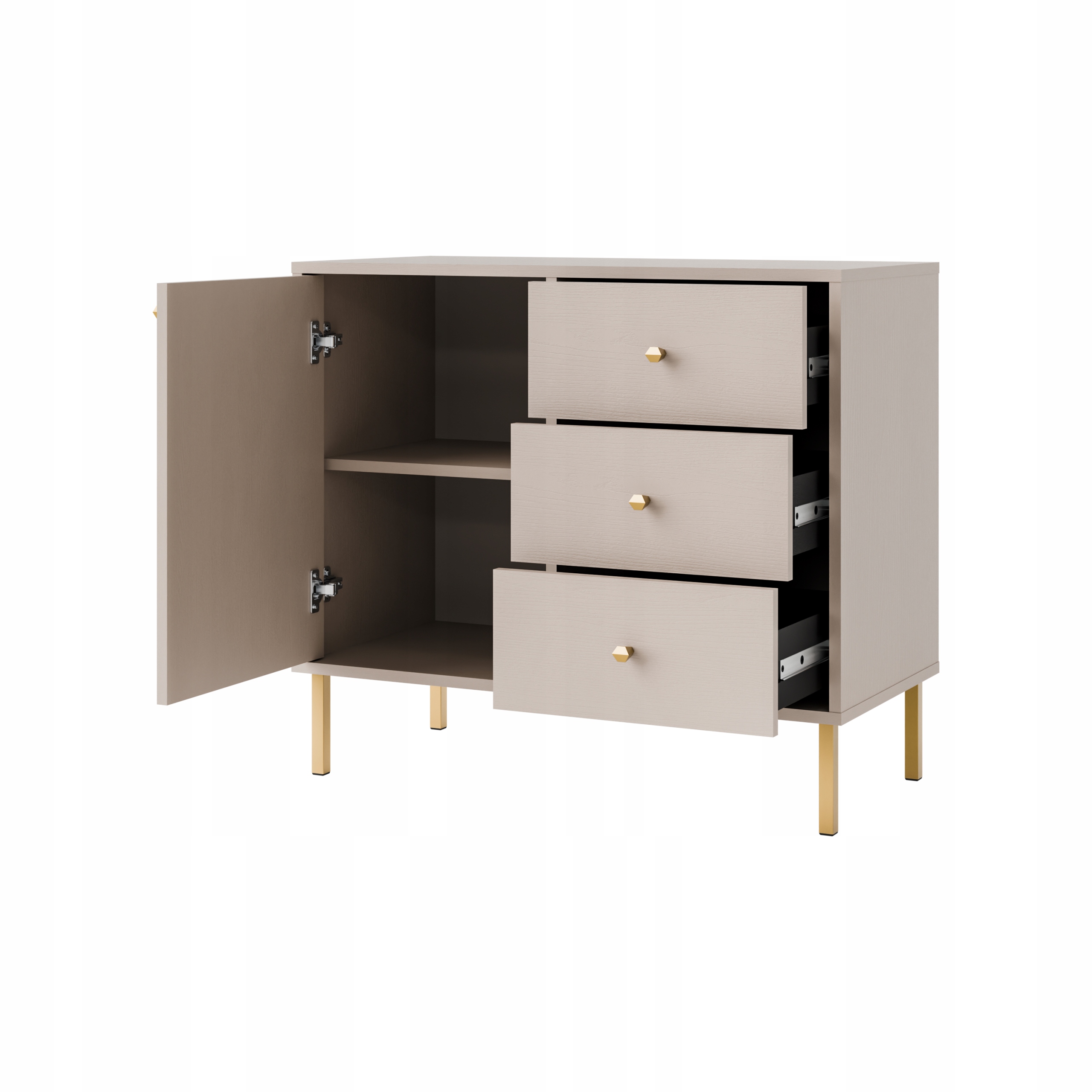 KOMODA Z SZUFLADAMI DRZWI BEŻ PIASKOWY salon jadalnia LUNA L814 NOGA PROSTA