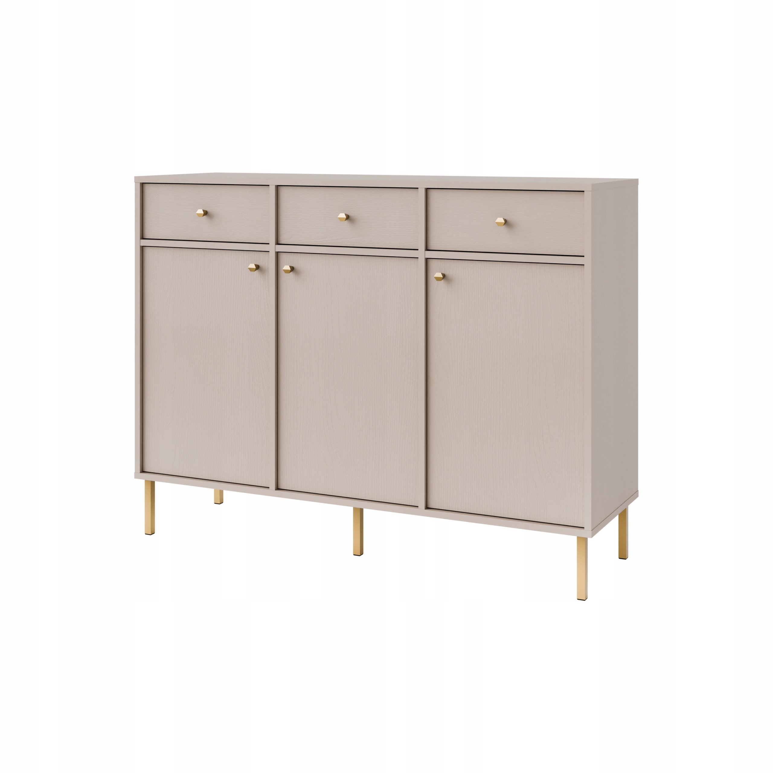 Całość osadzona jest na stylowych, smukłych nogach w złotym kolorze, które nadają meblowi lekkości i luksusowego charakteru.