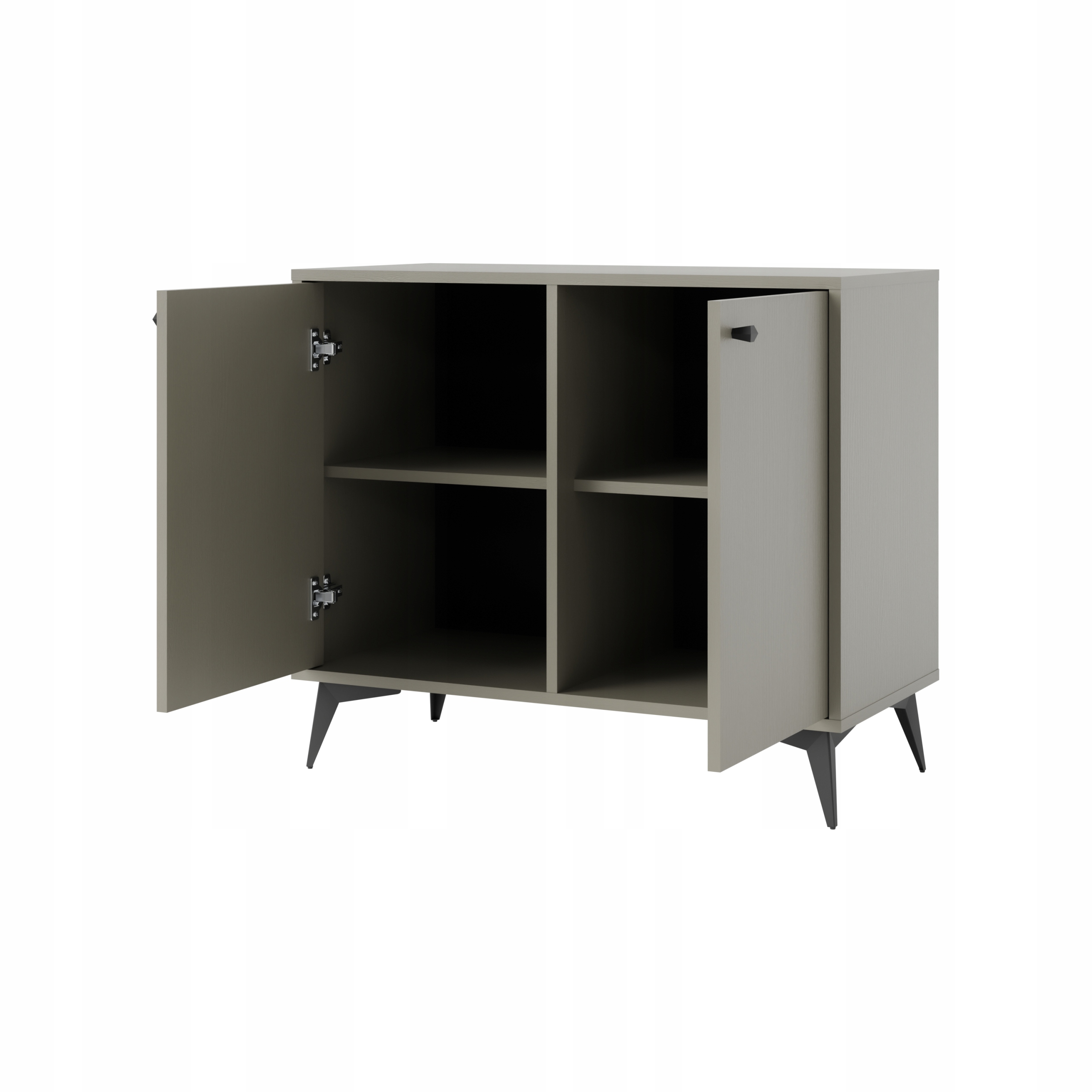 Całość osadzona jest na stylowych, smukłych nogach w czarnym kolorze, które nadają meblowi lekkości i luksusowego charakteru.