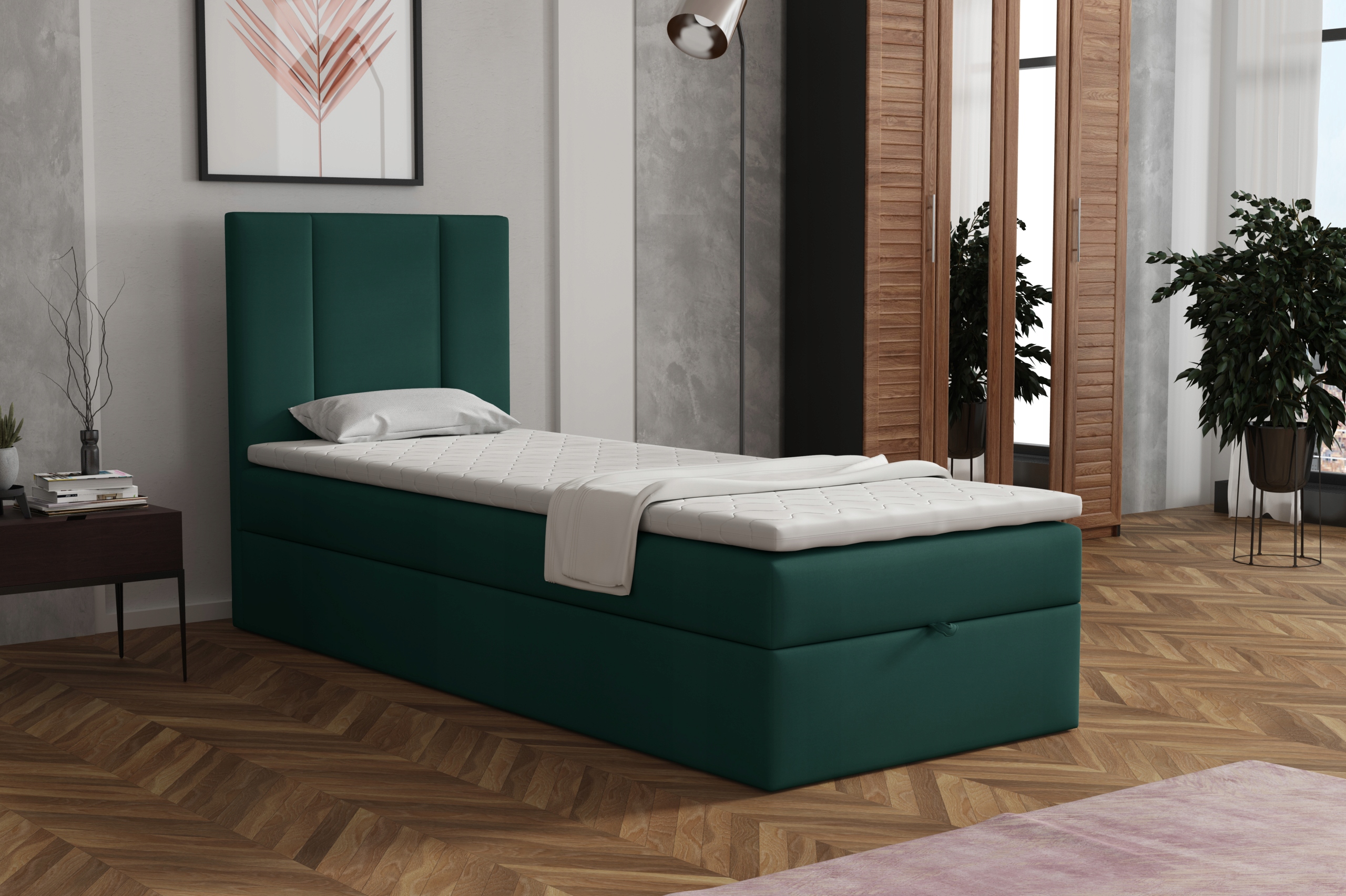 • Zagłowie panelowe – stylowe i funkcjonalne, podkreślające nowoczesny charakter łóżka.
