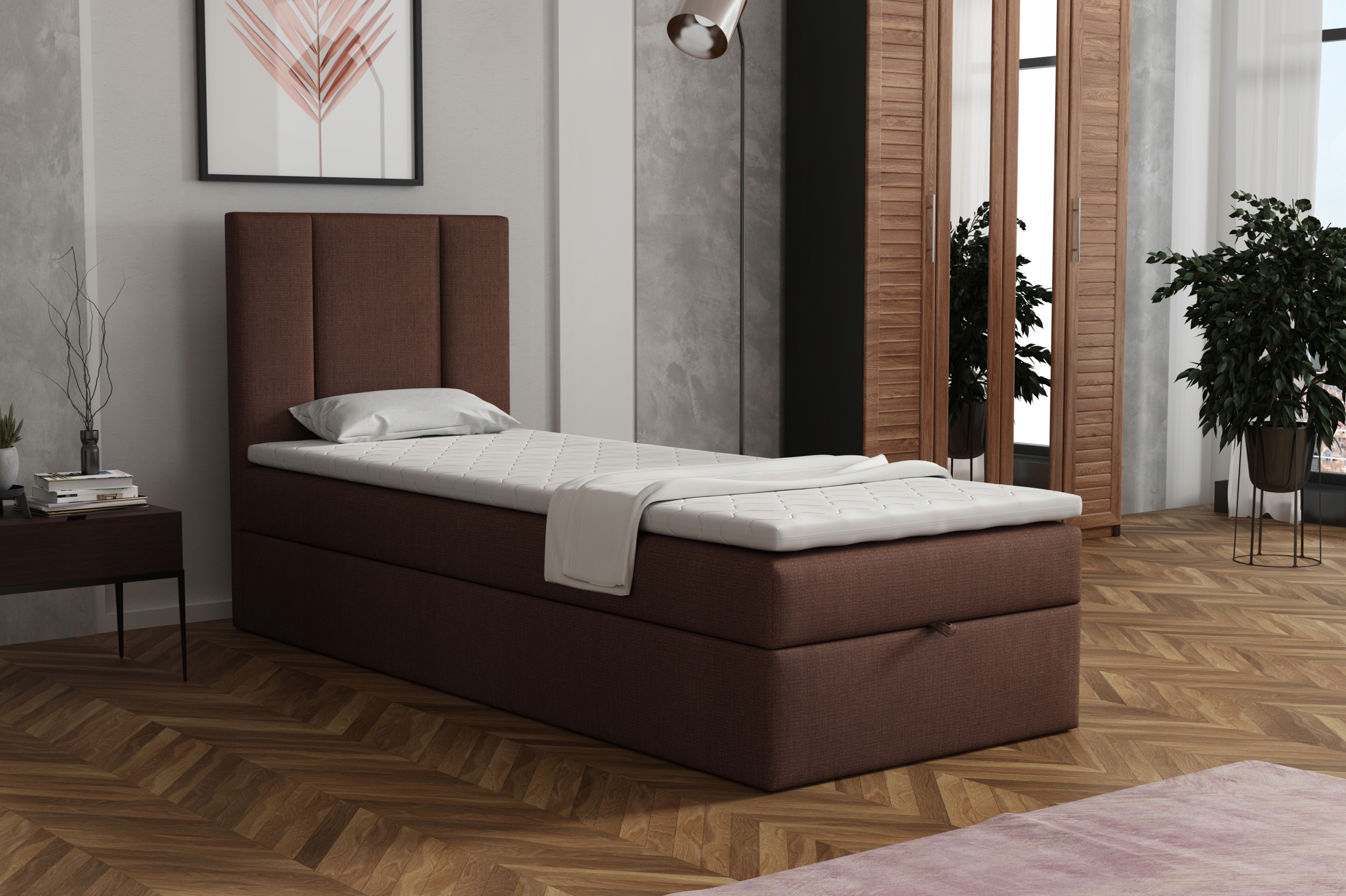 ŁÓŻKO KONTYNENTALNE ALTA 90x200 z MATERACEM i POJEMNIKIEM TAPICEROWANE