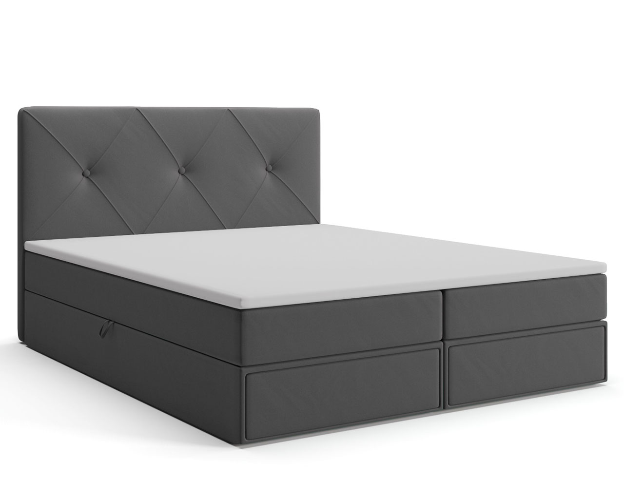 Łóżko Brno to połączenie elegancji, praktyczności, nowoczesności oraz wygody. Materac zastosowany w tym modelu został wykonany ze sprężyny typu BONELL o twardości H3 czyli średnio twardy. Ten model ma zastosowane nóżki o wysokości 1,5 cm tzw. "trójkąty".