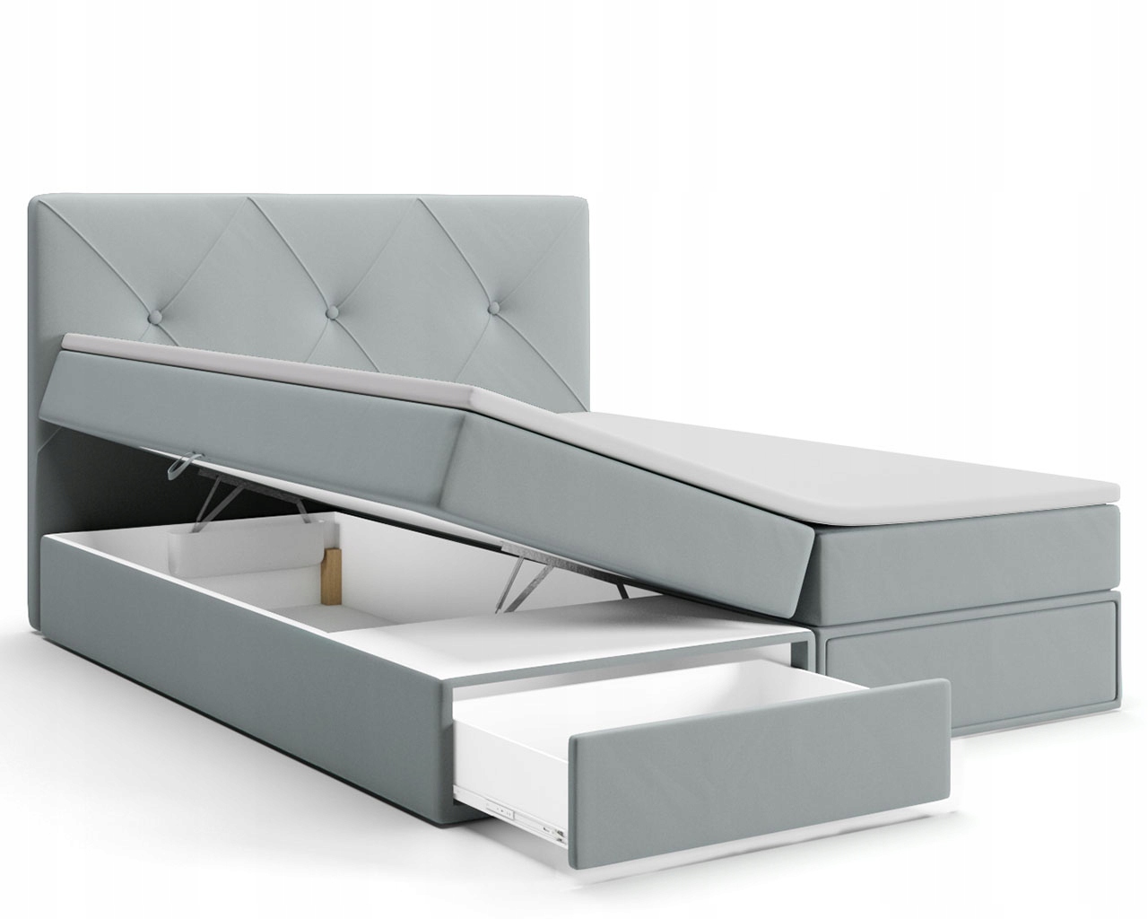 Łóżko Brno to połączenie elegancji, praktyczności, nowoczesności oraz wygody. Materac zastosowany w tym modelu został wykonany ze sprężyny typu BONELL o twardości H3 czyli średnio twardy. Ten model ma zastosowane nóżki o wysokości 1,5 cm tzw. "trójkąty".
