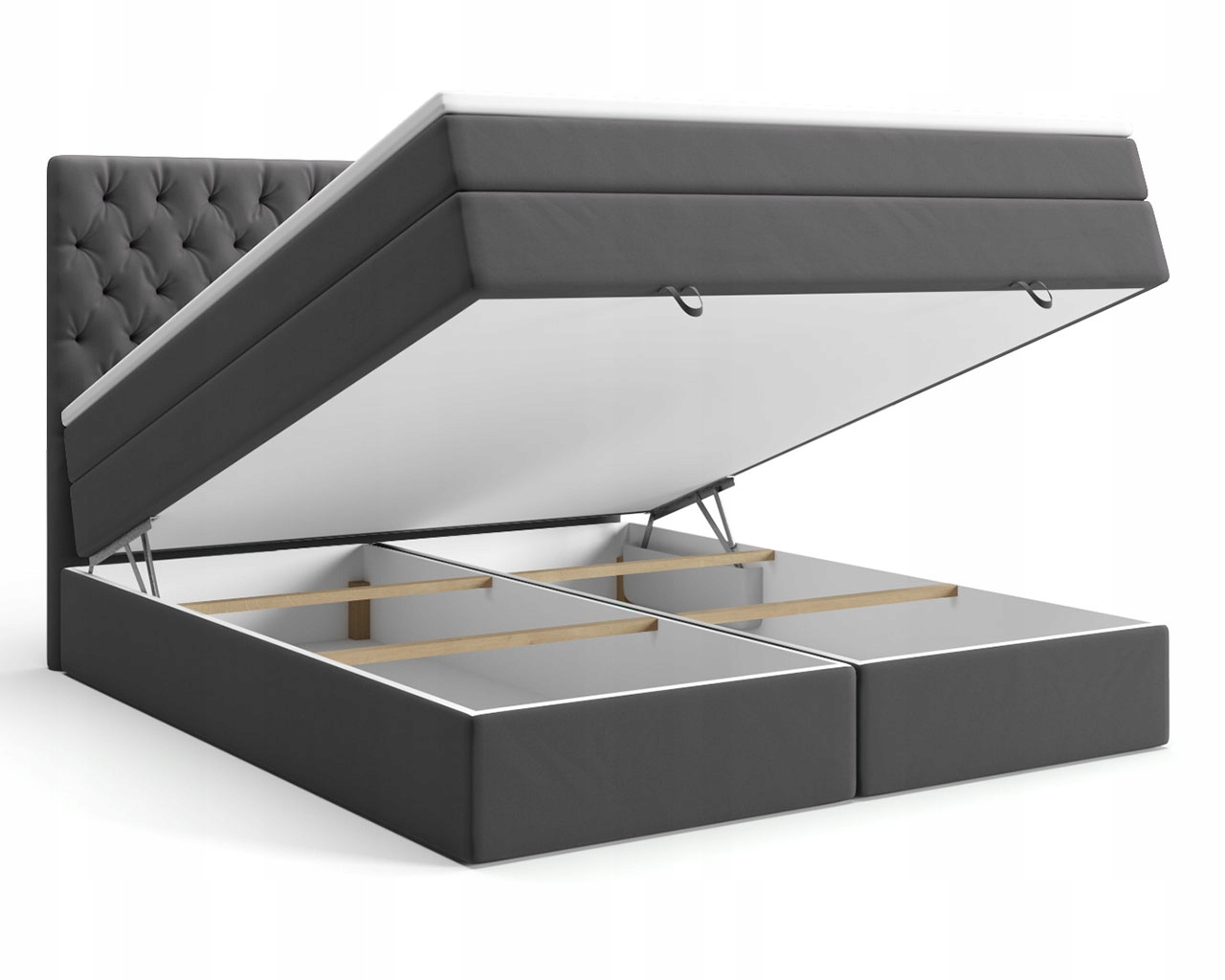 Łóżko LYON to połączenie elegancji, praktyczności, nowoczesności oraz wygody. Materace zastosowane w tym modelu zostały wykonane ze sprężyn typu BONELL i KIESZENIOWYCH (POCKETOWYCH) o twardości H3 czyli średnio twardy. Ten model ma zastosowane nóżki o wysokości 1,5 cm.