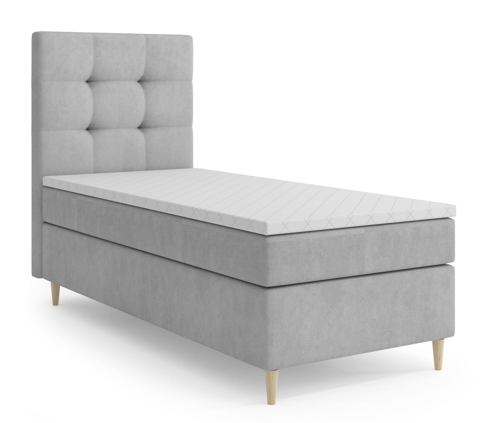 Łóżko MONO to połączenie elegancji, praktyczności, nowoczesności oraz wygody. Materac zastosowany w tym modelu został wykonany ze sprężyny typu BONELL o twardości H3 czyli średnio twardy. Ten model ma zastosowane nóżki drewniane o wysokości 13 cm.