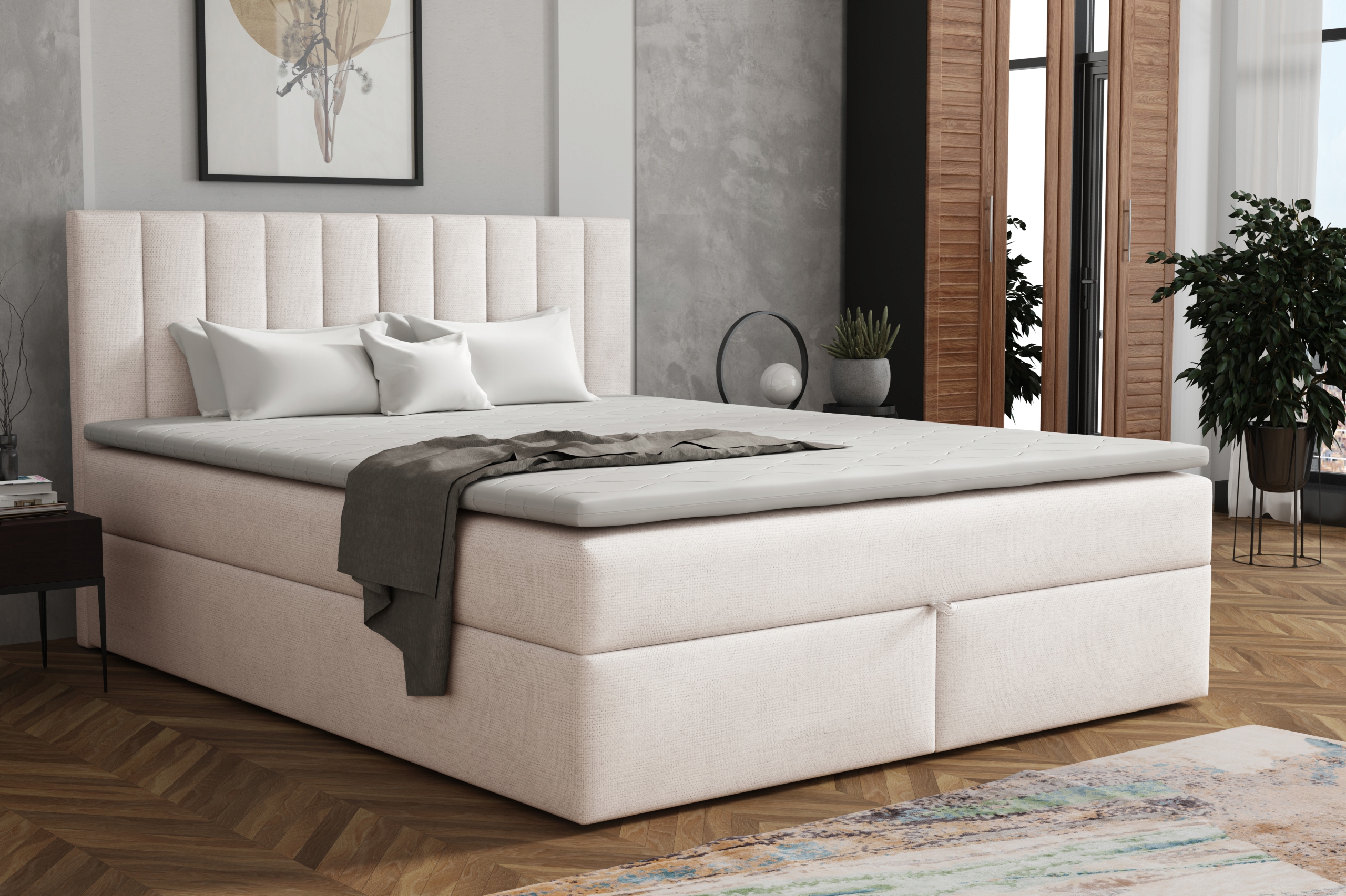 • Łóżko kontynentalne ZADAR z tapicerowaną konstrukcją