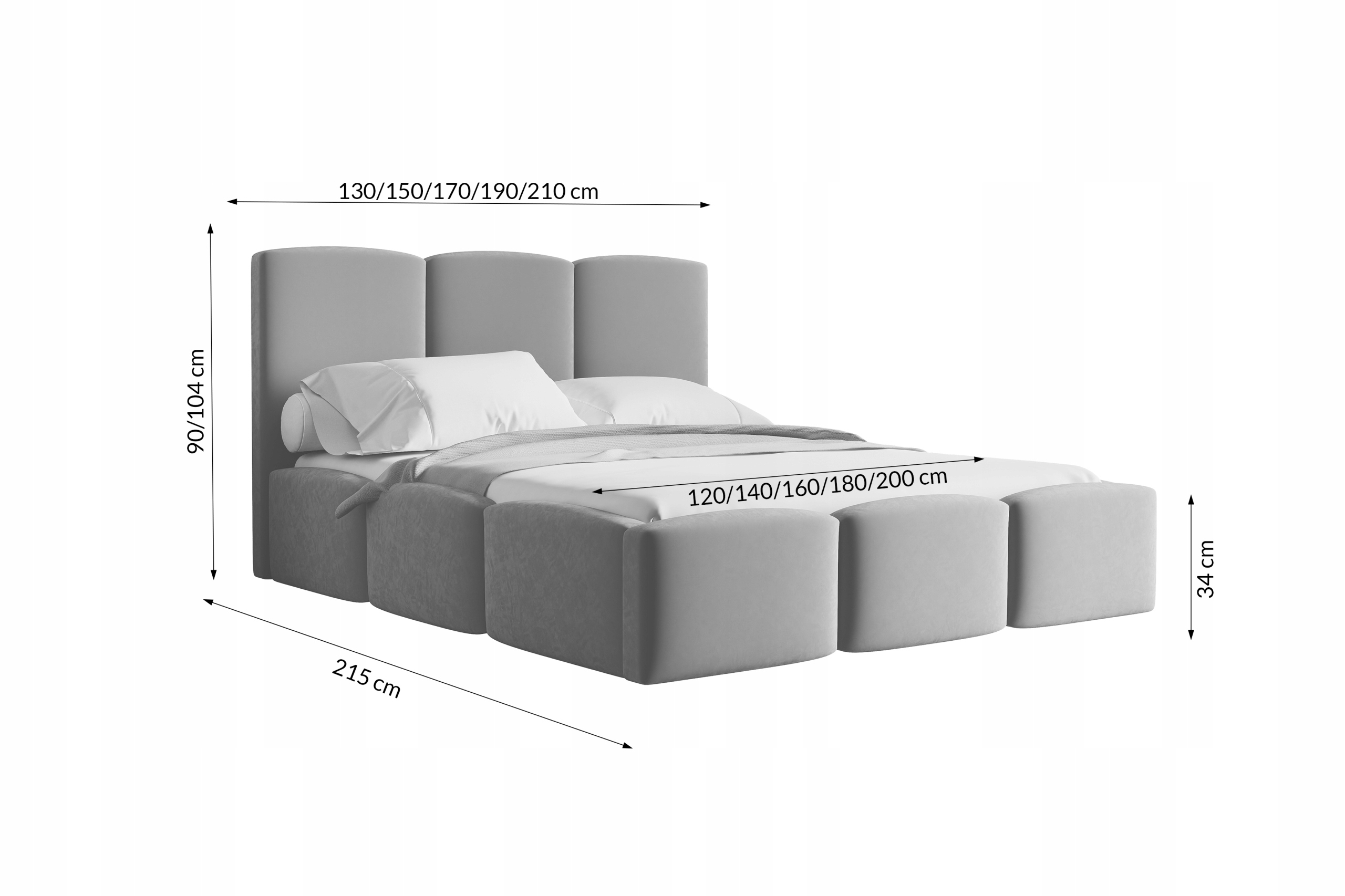 Łóżko tapicerowane MALAGA to połączenie nowoczesnej formy z solidną konstrukcją, zaprojektowane z myślą o komforcie snu i trwałości użytkowania. Charakterystyczna, segmentowa bryła oraz miękkie tapicerowane elementy nadają całości wyrazisty, a jednocześnie elegancki wygląd.Model MALAGA doskonale sprawdzi się w nowoczesnych i designerskich sypialniach, oferując stabilną podstawę pod materac oraz wygodne wezgłowie do codziennego użytkowania.Cechy :
