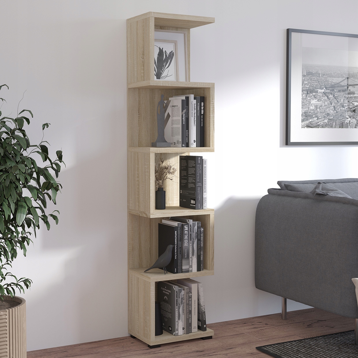 Regał MOXA M01 szary dąb artisan sonoma do salonu pokoju sypialni