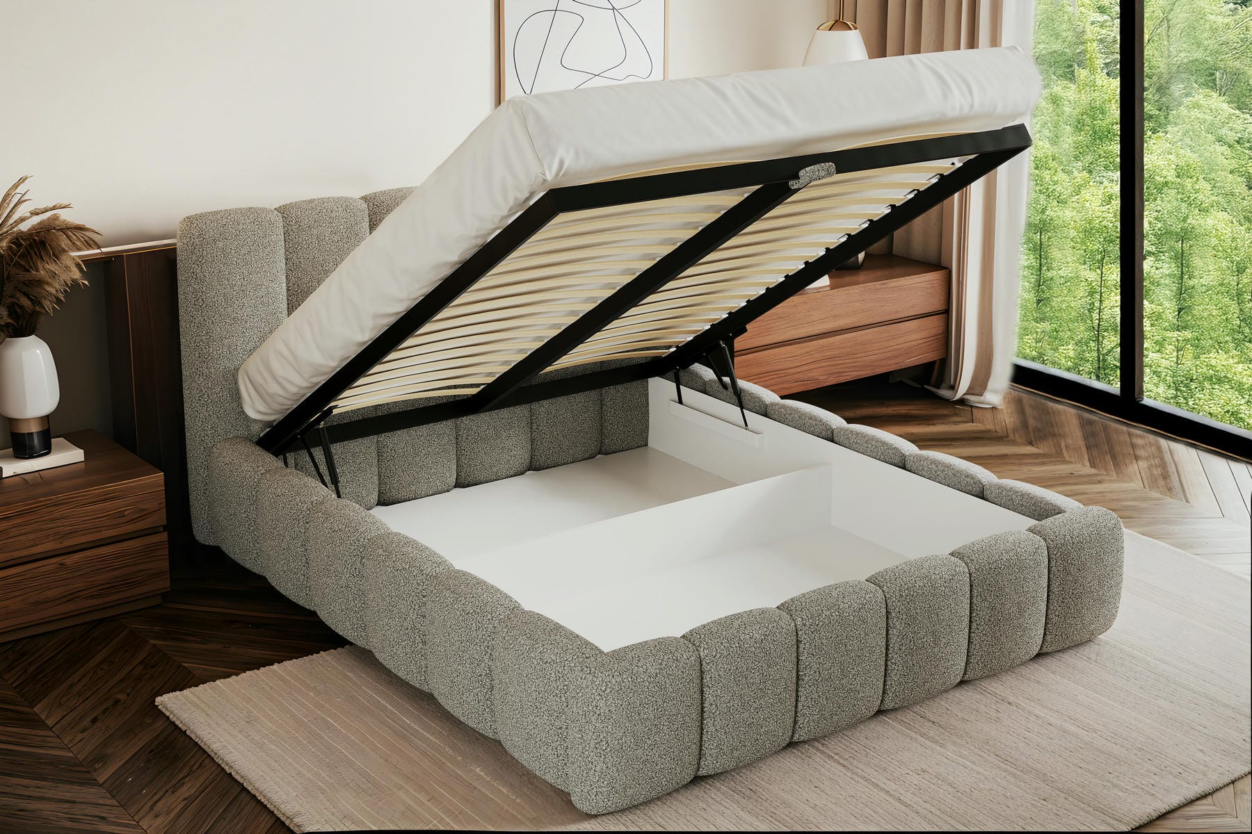 Oferujemy możliwość wymiany standardowego stelaża drewnianego na wytrzymały stelaż metalowy, przeznaczony do łóżek tapicerowanych. To idealne rozwiązanie dla osób ceniących większą trwałość, stabilność oraz długą żywotność konstrukcji.