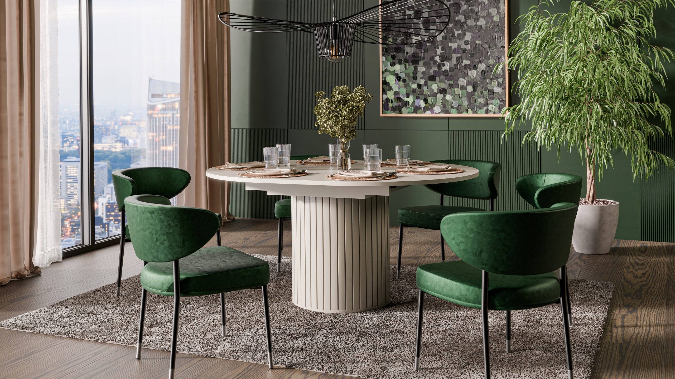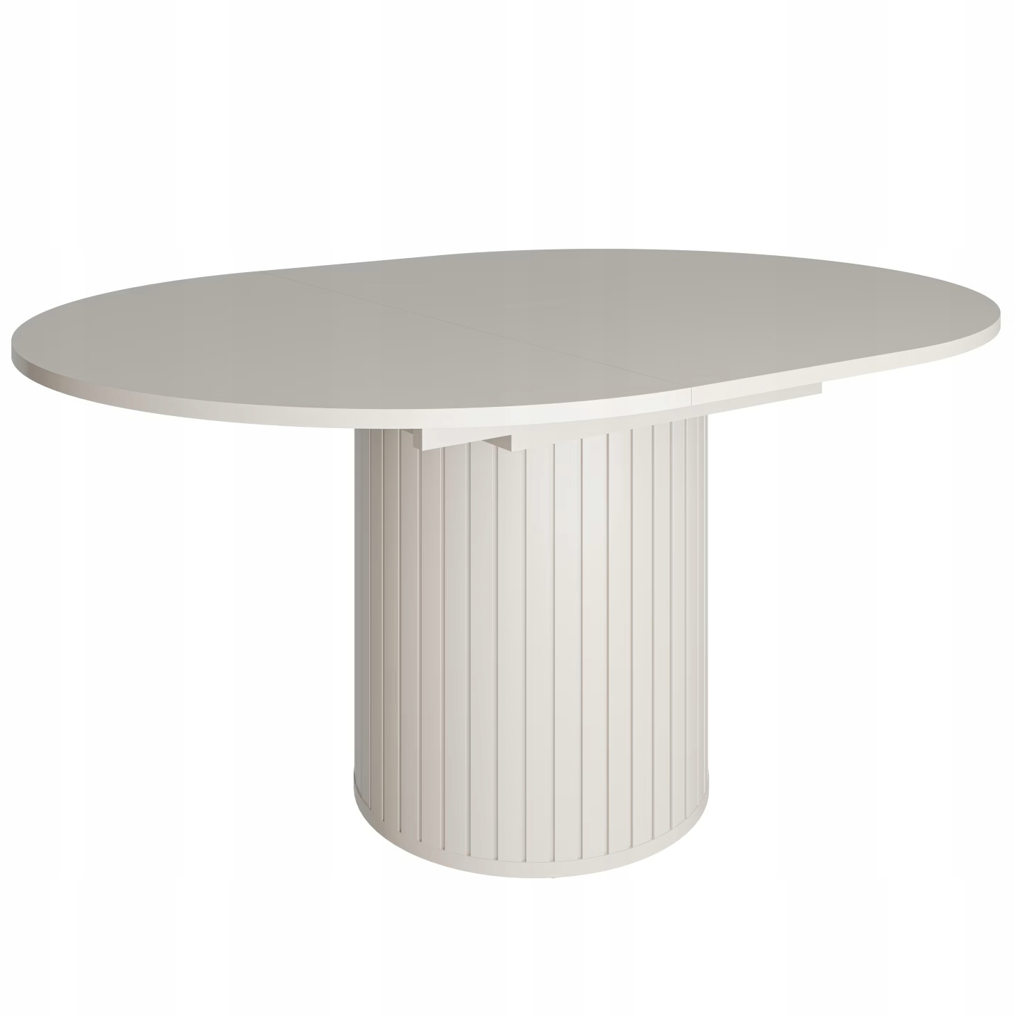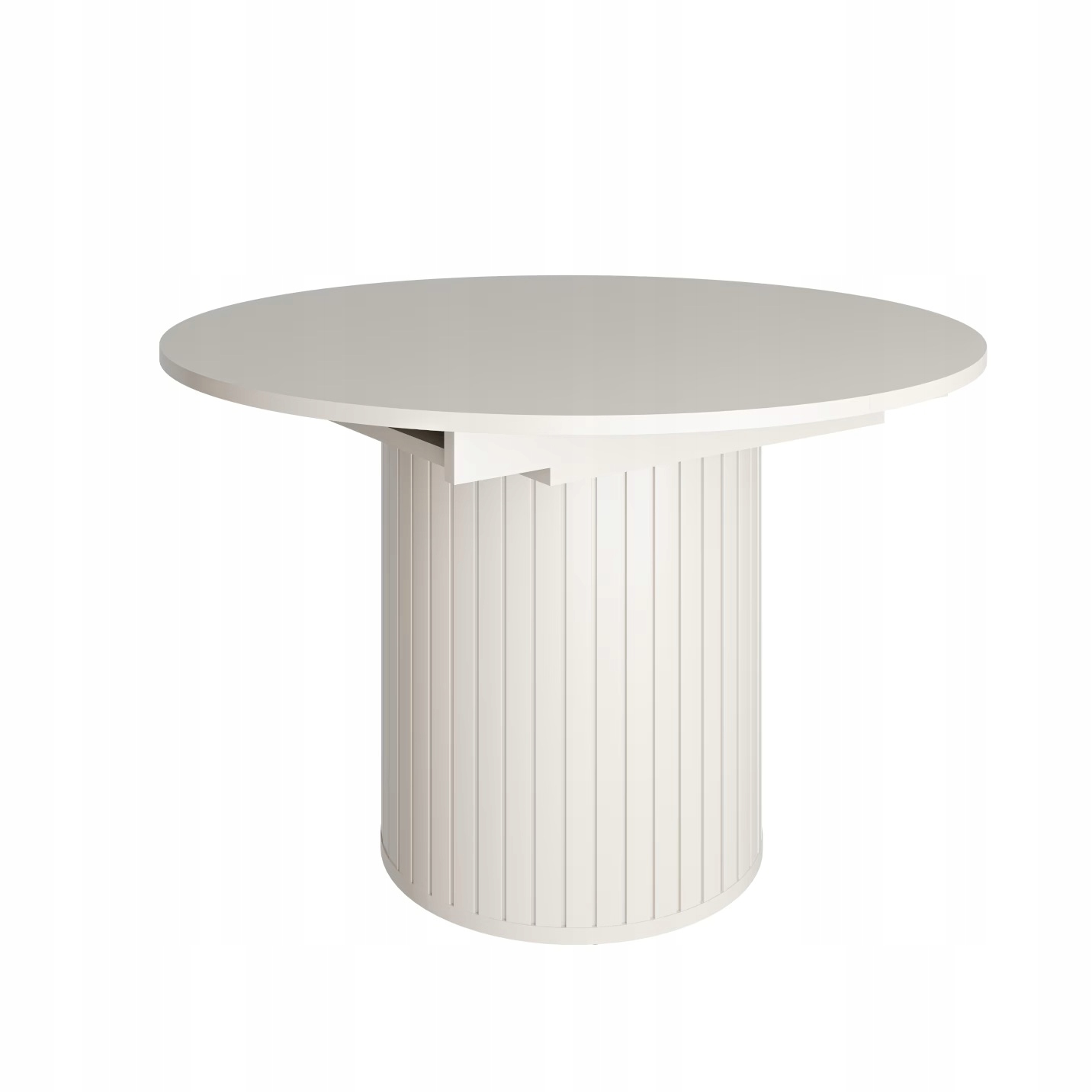 Stół Okrągły Rozkładany to idealne połączenie elegancji, funkcjonalności i nowoczesnego wzornictwa. Jego subtelnie zaokrąglona forma oraz dekoracyjne pionowe frezowania na podstawie dodają wnętrzu lekkości i wyrafinowanego charakteru.