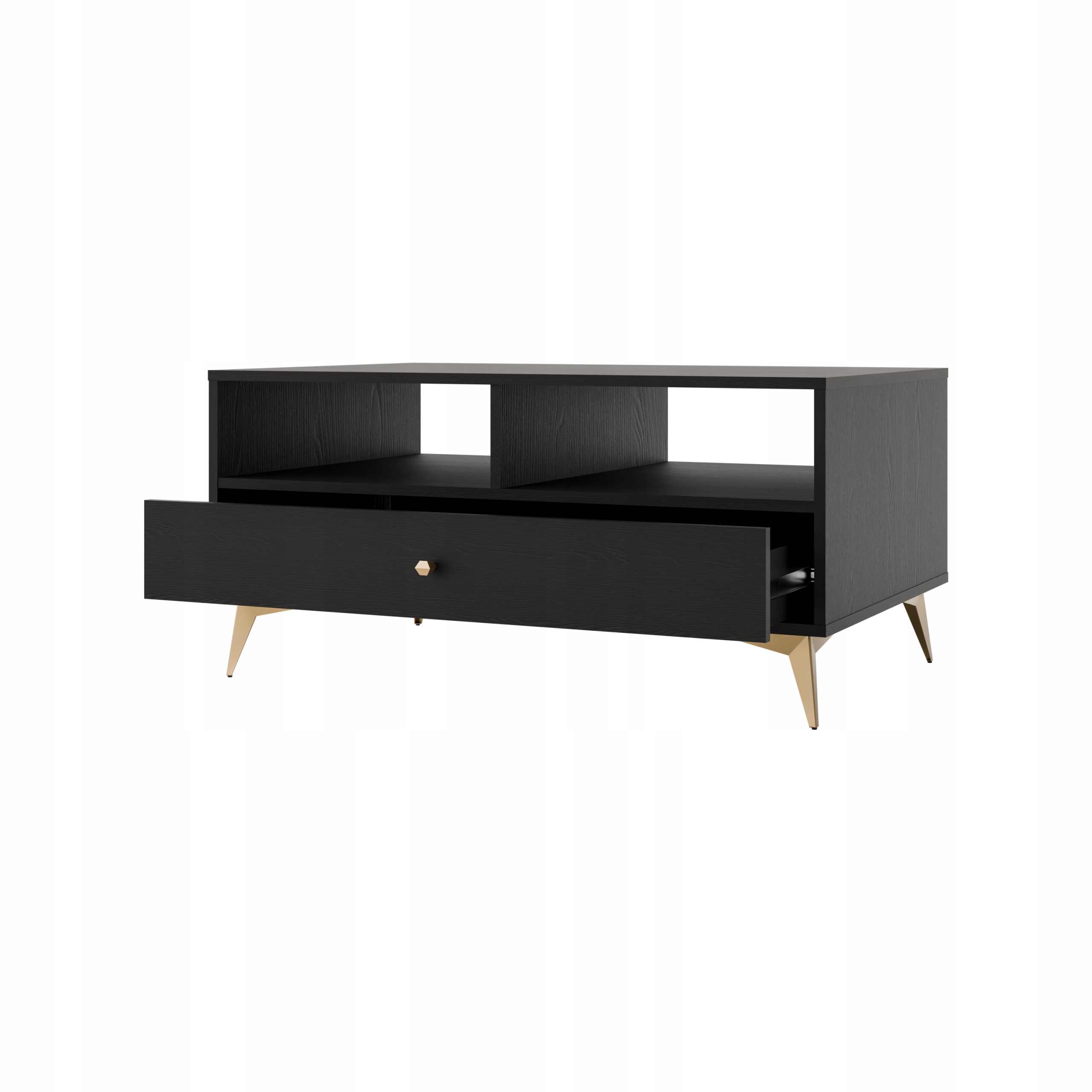 Prostokątny stolik kawowy to połączenie nowoczesnego designu z funkcjonalnością, które idealnie uzupełni wystrój salonu. Mebel wyposażony jest w praktyczną szufladę, umożliwiającą przechowywanie drobnych akcesoriów – pilotów, czasopism, podkładek czy innych przedmiotów, które warto mieć zawsze pod ręką.