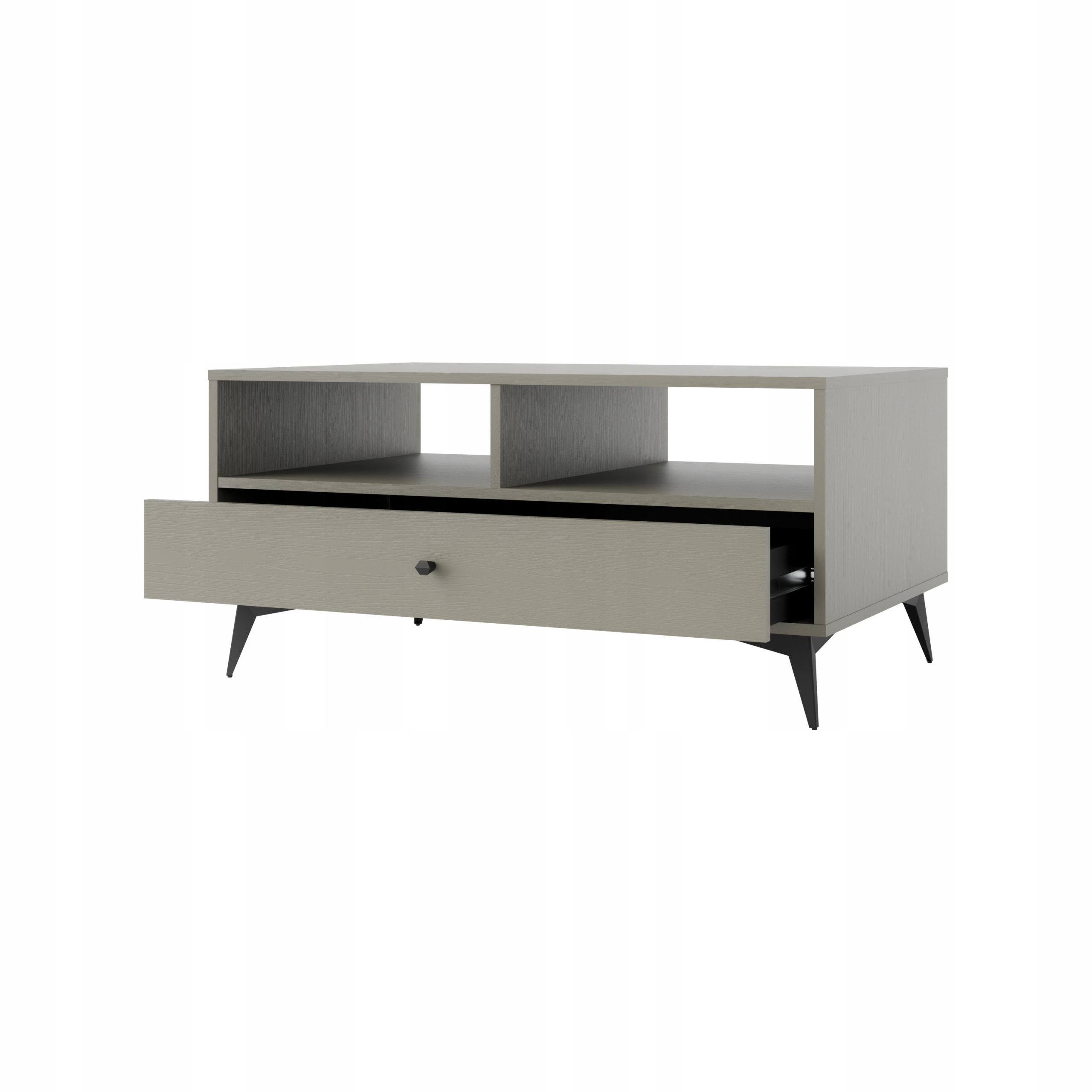 Prostokątny stolik kawowy to połączenie nowoczesnego designu z funkcjonalnością, które idealnie uzupełni wystrój salonu. Mebel wyposażony jest w praktyczną szufladę, umożliwiającą przechowywanie drobnych akcesoriów – pilotów, czasopism, podkładek czy innych przedmiotów, które warto mieć zawsze pod ręką.