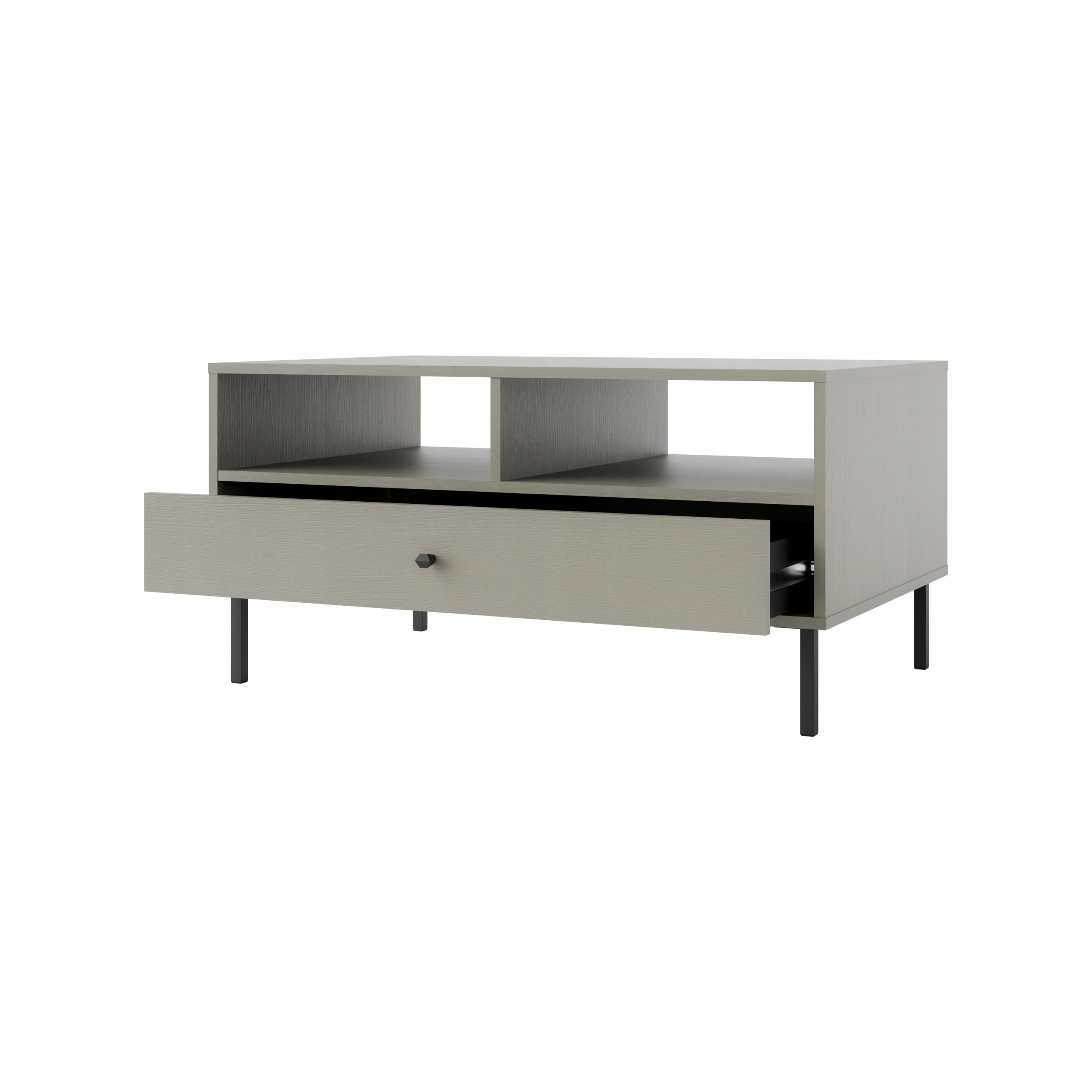 Prostokątny stolik kawowy to połączenie nowoczesnego designu z funkcjonalnością, które idealnie uzupełni wystrój salonu. Mebel wyposażony jest w praktyczną szufladę, umożliwiającą przechowywanie drobnych akcesoriów – pilotów, czasopism, podkładek czy innych przedmiotów, które warto mieć zawsze pod ręką.