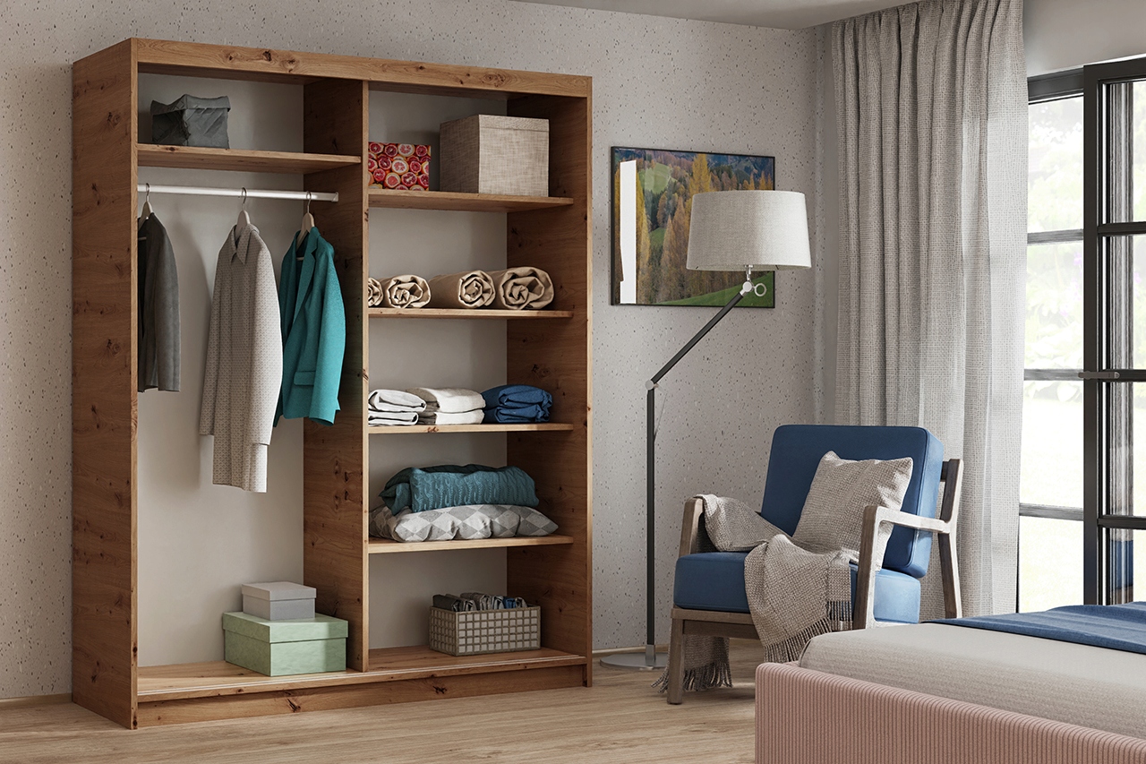 Szafa Przesuwna Lamele DART 180 Garderoba Biała Czarna Artisan