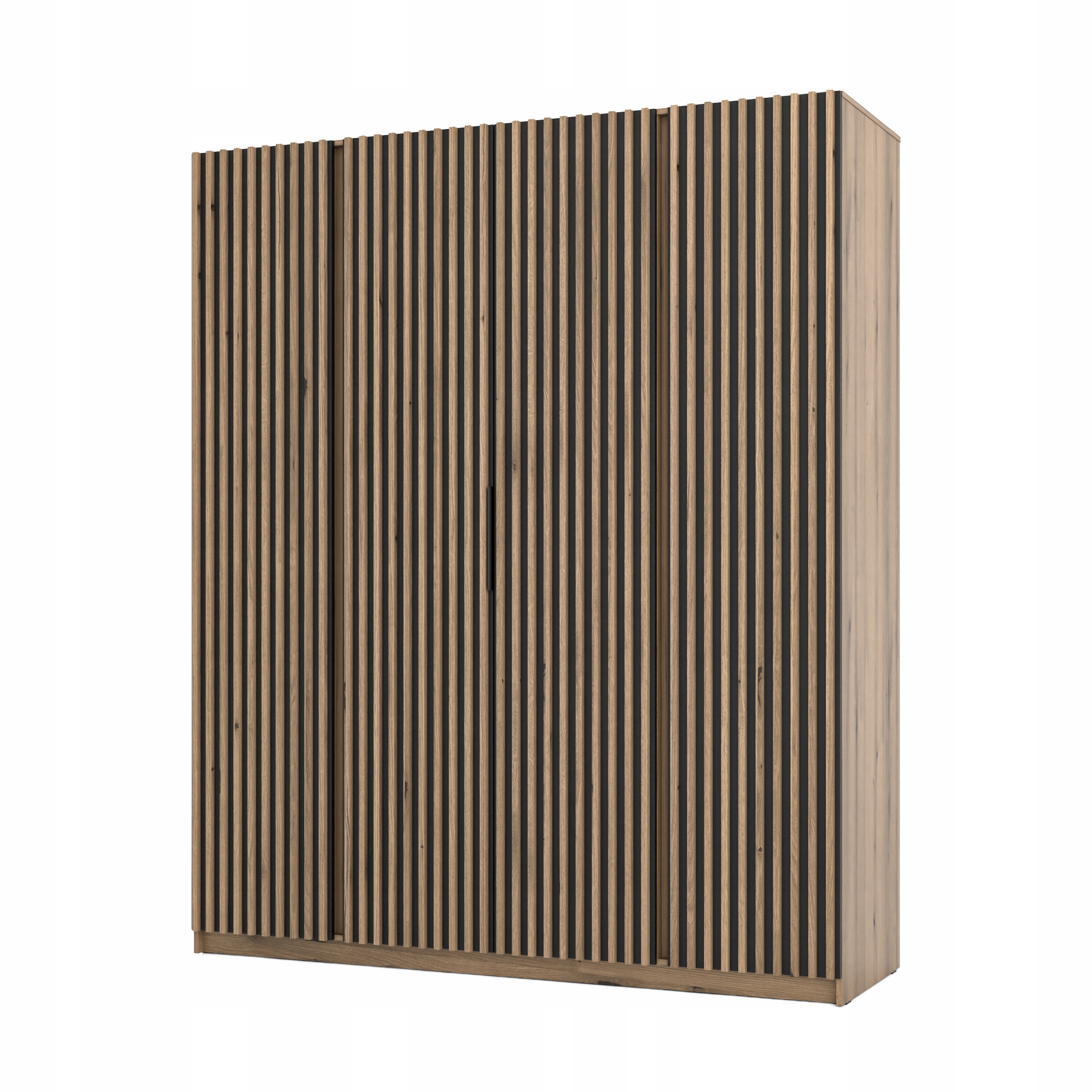 Nowoczesna szafa 4-drzwiowa to połączenie funkcjonalności i stylowego designu, które doskonale wpisze się w każde wnętrze. Przestronne wnętrze wyposażone jest w praktyczne półki, które umożliwiają wygodne przechowywanie ubrań, dodatków oraz drobnych przedmiotów. Solidna konstrukcja oraz nowoczesne wykończenie nadają meblowi elegancki i ponadczasowy charakter. Idealna do sypialni, garderoby czy przedpokoju — łączy w sobie funkcję praktyczną i estetyczną, tworząc idealne rozwiązanie dla osób ceniących porządek i nowoczesny styl.