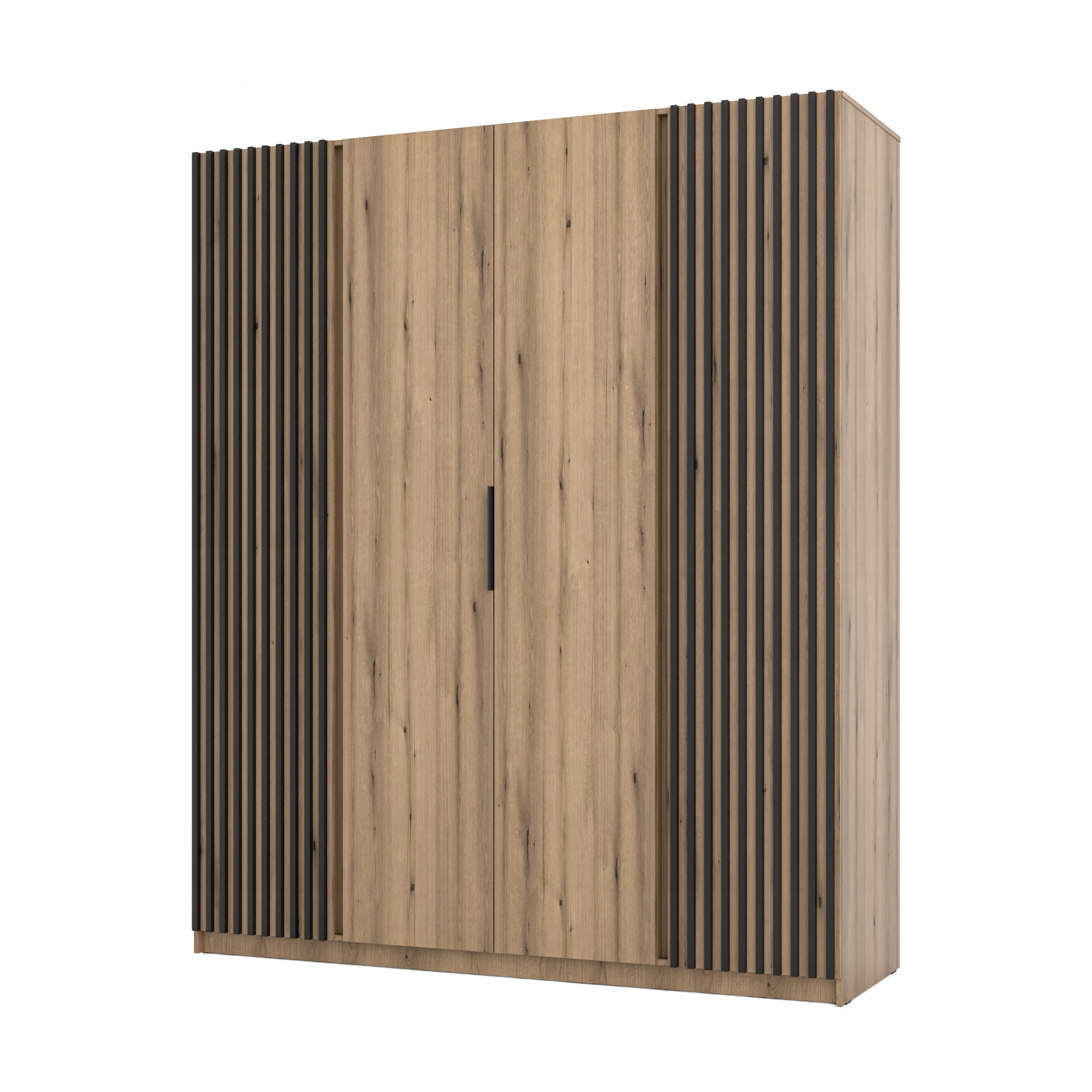 Nowoczesna szafa 4-drzwiowa to połączenie funkcjonalności i stylowego designu, które doskonale wpisze się w każde wnętrze. Przestronne wnętrze wyposażone jest w praktyczne półki, które umożliwiają wygodne przechowywanie ubrań, dodatków oraz drobnych przedmiotów. Dodatkowo, szuflady z łatwym systemem wysuwania zapewniają porządek i łatwy dostęp do najpotrzebniejszych rzeczy. Solidna konstrukcja oraz nowoczesne wykończenie nadają meblowi elegancki i ponadczasowy charakter. Idealna do sypialni, garderoby czy przedpokoju — łączy w sobie funkcję praktyczną i estetyczną, tworząc idealne rozwiązanie dla osób ceniących porządek i nowoczesny styl.