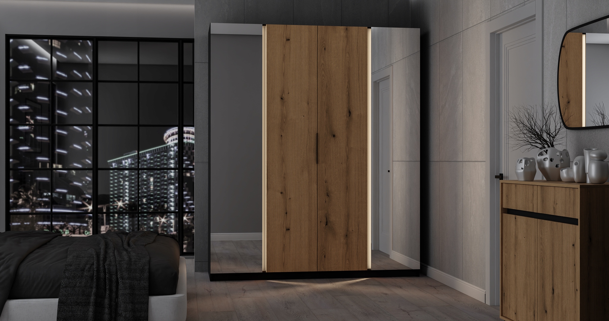 SZAFA SAVOY DĄB EVOKE CZARNY LUSTRA LAMEL SYPIALNIA GARDEROBA DRZWI SZUFLAD