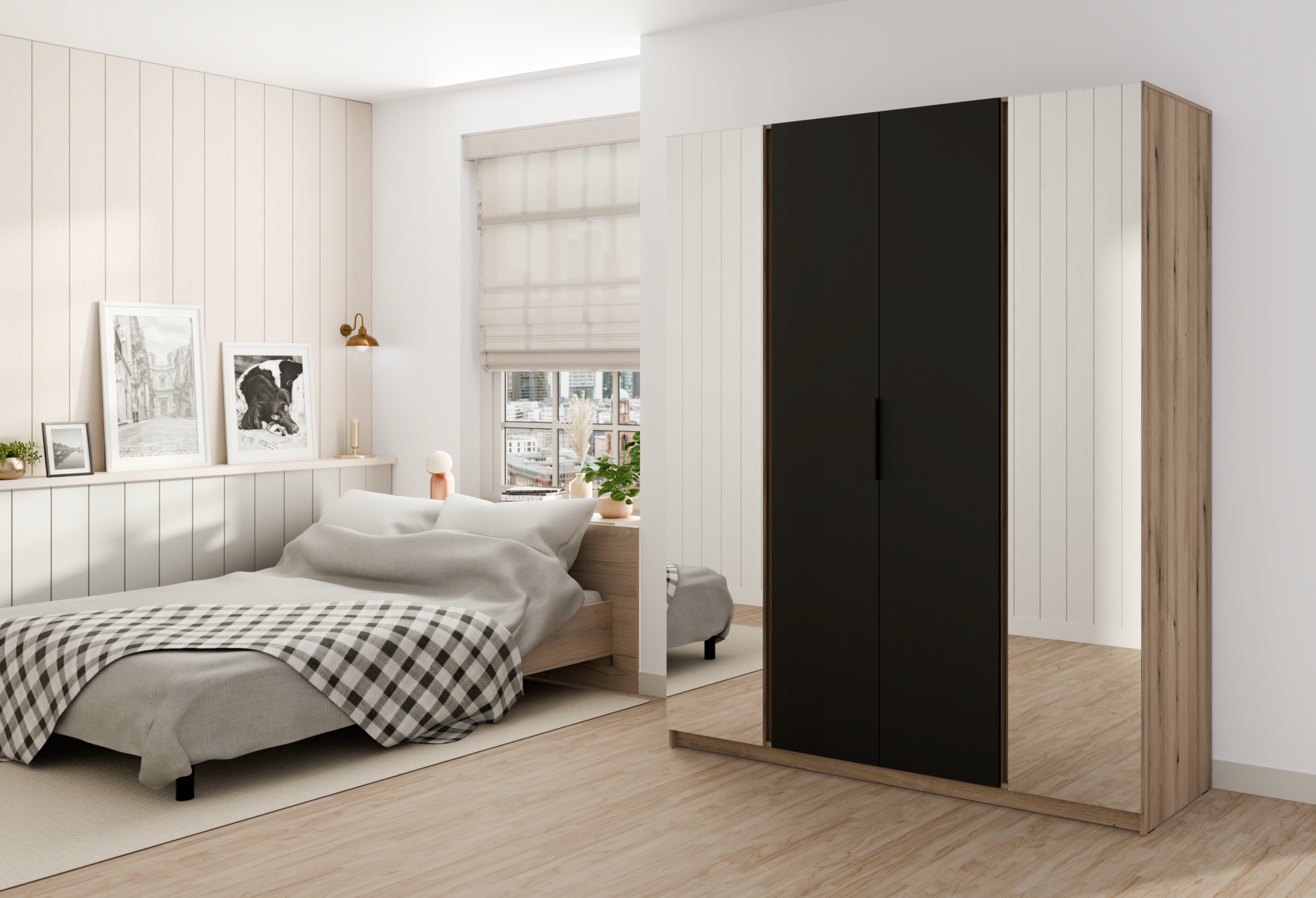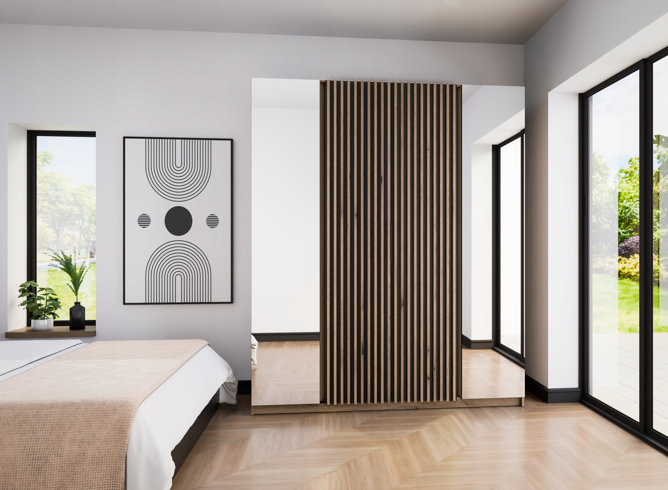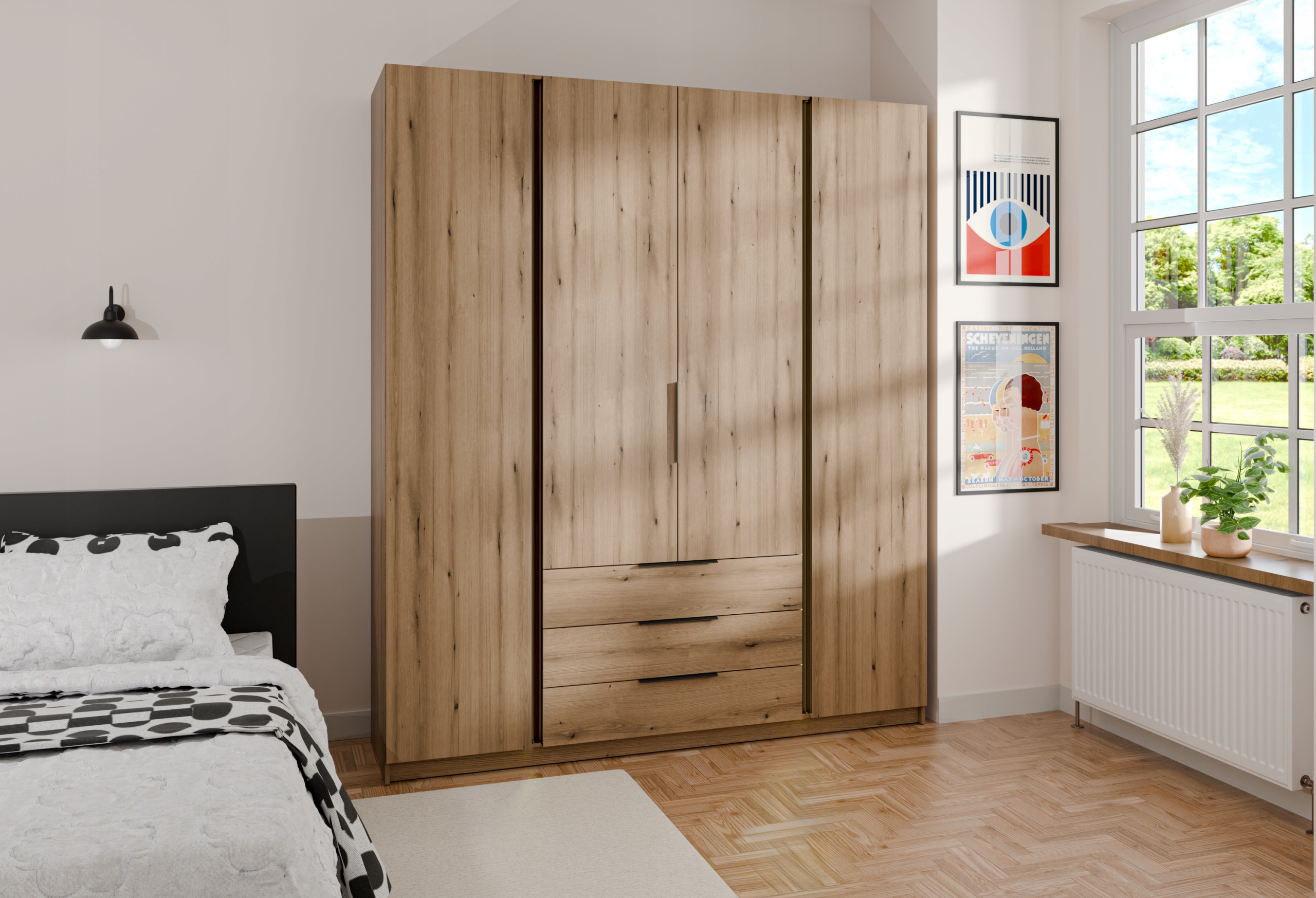 Nowoczesna szafa 4-drzwiowa to połączenie funkcjonalności i stylowego designu, które doskonale wpisze się w każde wnętrze. Przestronne wnętrze wyposażone jest w praktyczne półki, które umożliwiają wygodne przechowywanie ubrań, dodatków oraz drobnych przedmiotów. Solidna konstrukcja oraz nowoczesne wykończenie nadają meblowi elegancki i ponadczasowy charakter. Idealna do sypialni, garderoby czy przedpokoju — łączy w sobie funkcję praktyczną i estetyczną, tworząc idealne rozwiązanie dla osób ceniących porządek i nowoczesny styl.