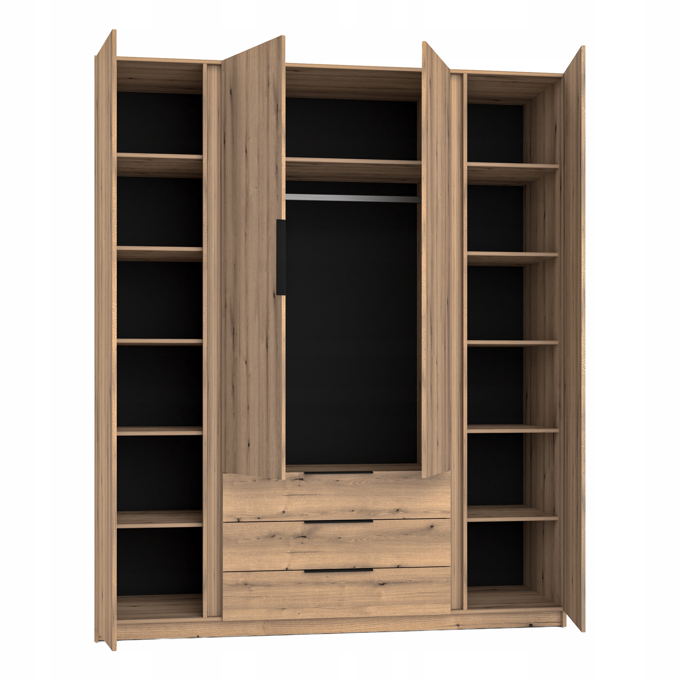 Nowoczesna szafa 4-drzwiowa z szufladami to połączenie funkcjonalności i stylowego designu, które doskonale wpisze się w każde wnętrze. Przestronne wnętrze wyposażone jest w praktyczne półki, które umożliwiają wygodne przechowywanie ubrań, dodatków oraz drobnych przedmiotów. Dodatkowo, szuflady z łatwym systemem wysuwania zapewniają porządek i łatwy dostęp do najpotrzebniejszych rzeczy. Solidna konstrukcja oraz nowoczesne wykończenie nadają meblowi elegancki i ponadczasowy charakter. Idealna do sypialni, garderoby czy przedpokoju — łączy w sobie funkcję praktyczną i estetyczną, tworząc idealne rozwiązanie dla osób ceniących porządek i nowoczesny styl.