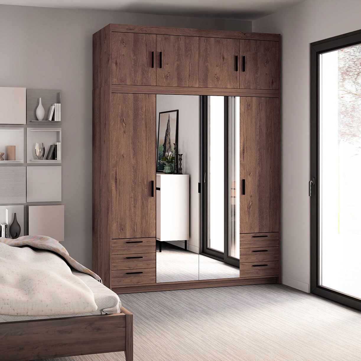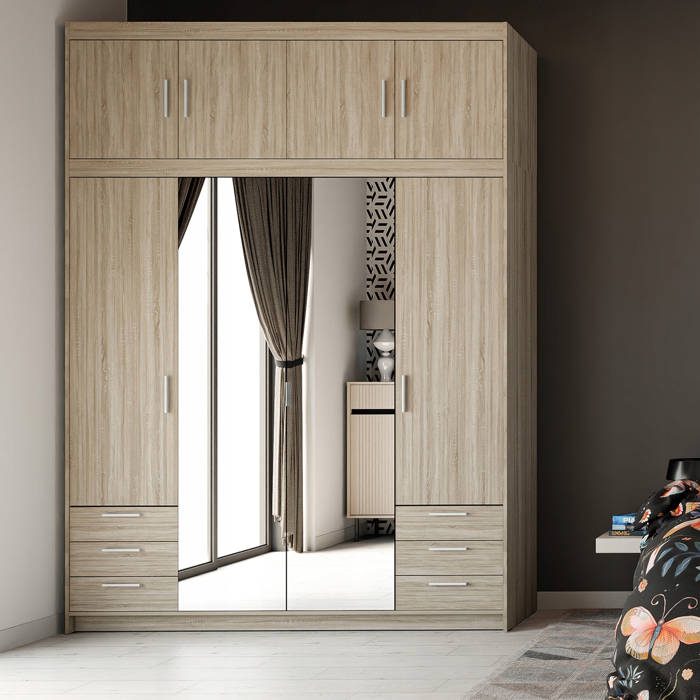 Szafa z nadstawką EMIC 4D6SN czterodrzwiowa lustro szuflady wysoka 245 cm