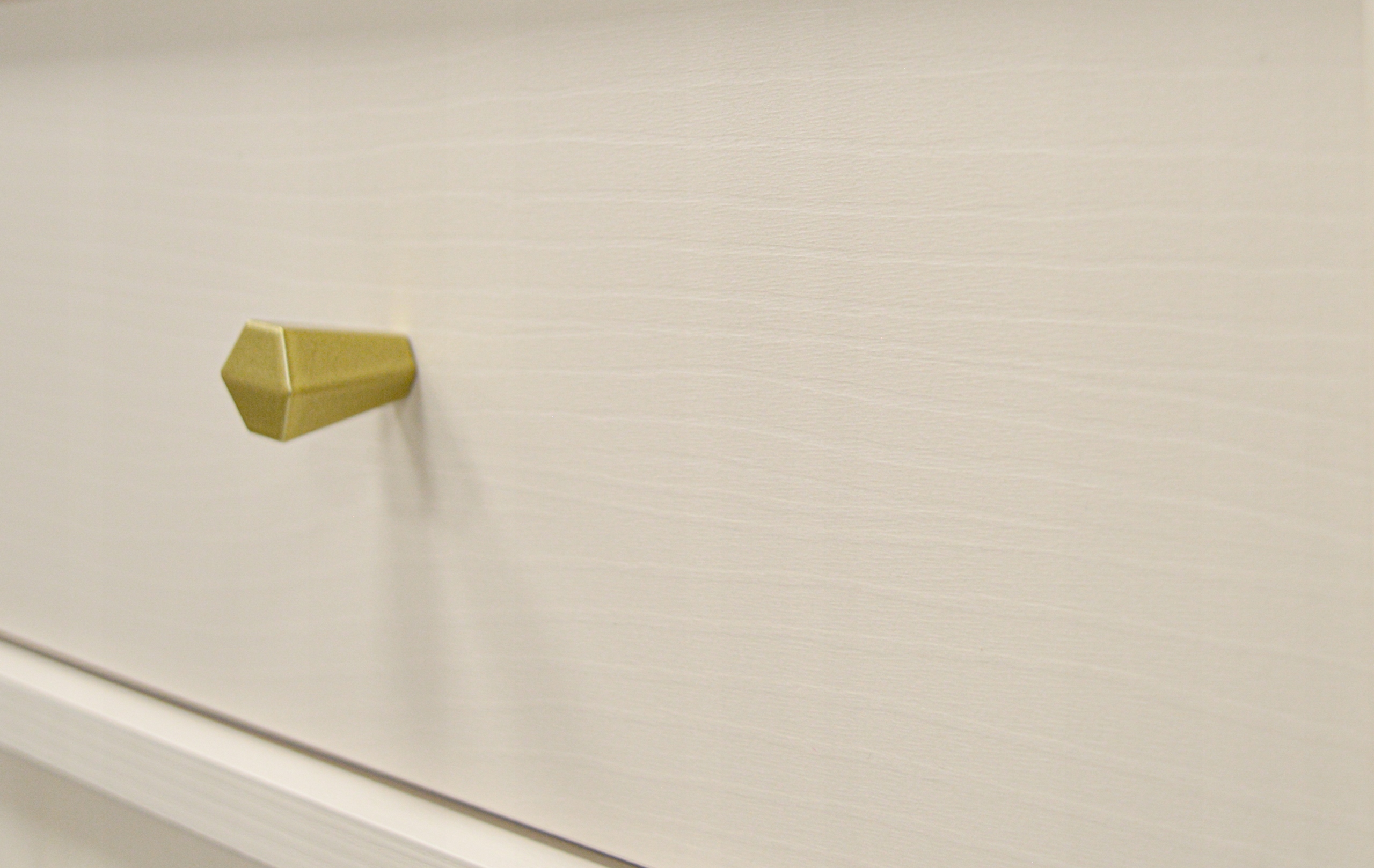 Całość osadzona jest na stylowych, smukłych nogach w złotym kolorze, które nadają meblowi lekkości i luksusowego charakteru.