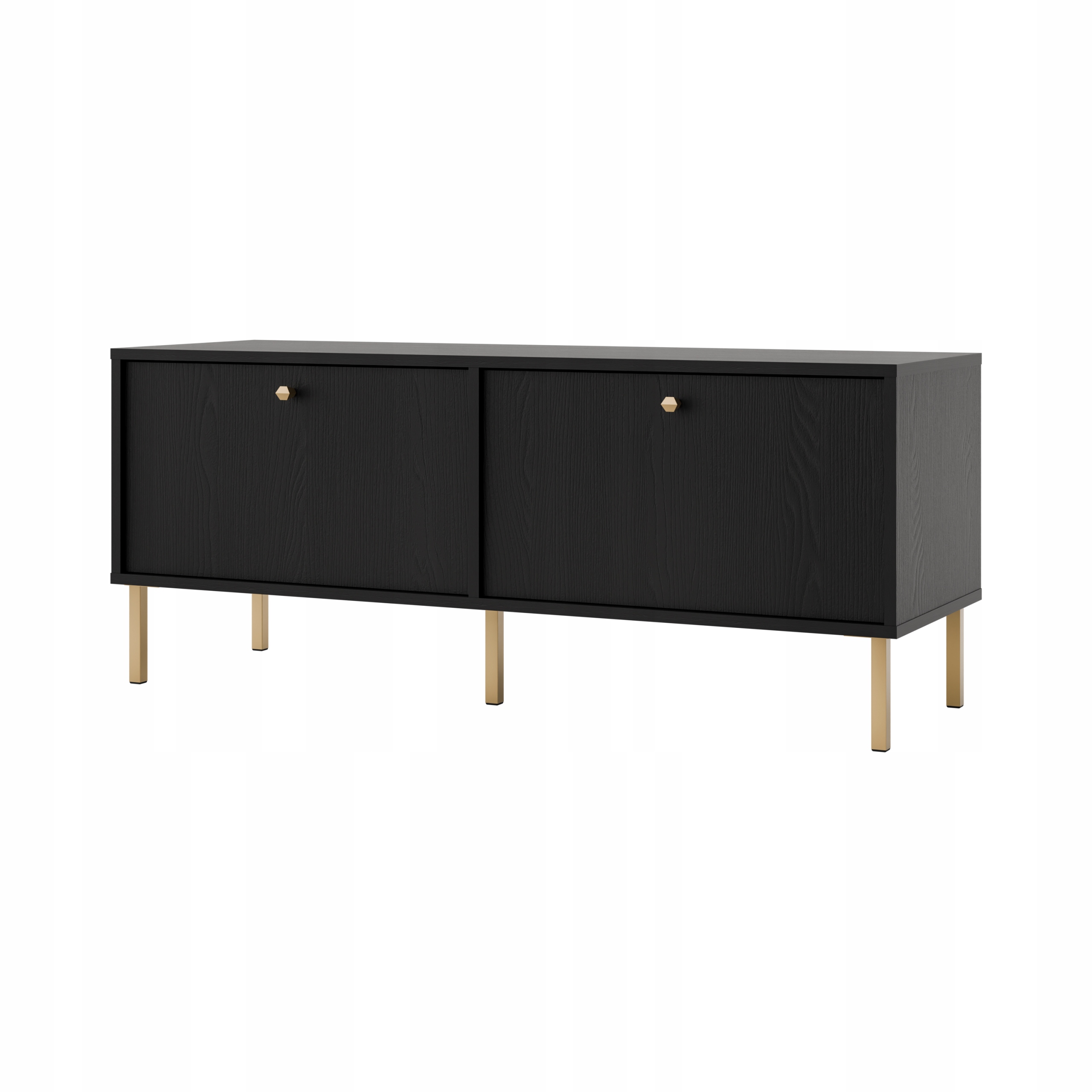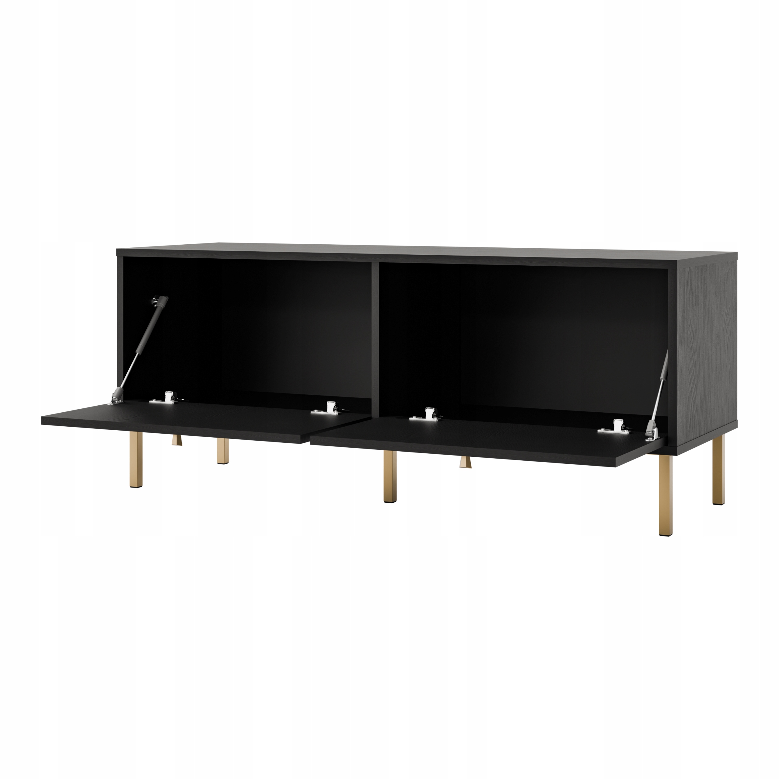 Mebel wyposażony jest w dwie pojemne, frontowe szafki otwierane do dołu, co zapewnia wygodny dostęp do wnętrza oraz umożliwia przechowywanie sprzętu RTV, akcesoriów lub innych domowych przedmiotów.
