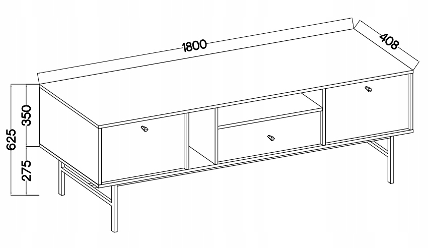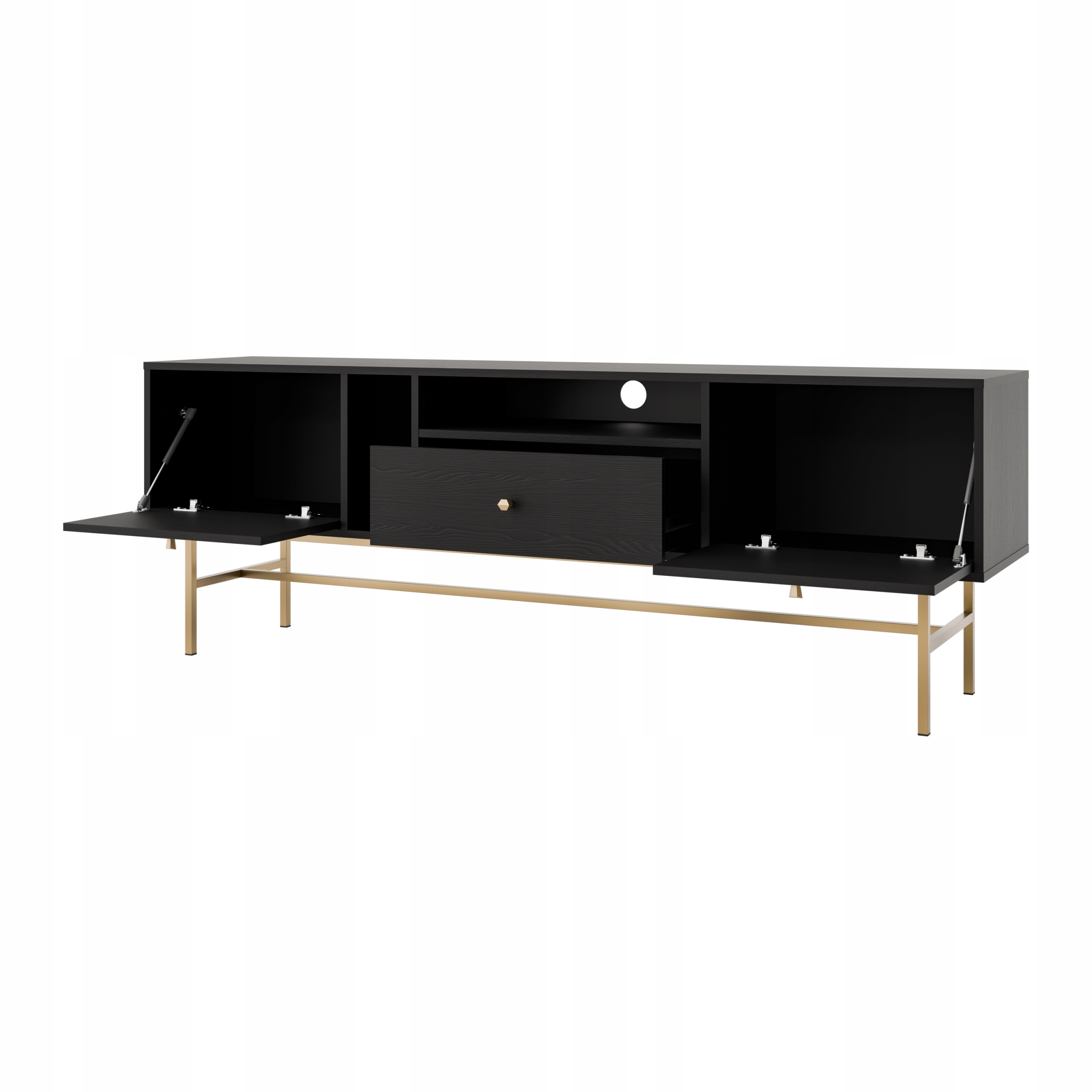 Mebel wyposażony jest w szufladę, wnęki i dwie pojemne, frontowe szafki otwierane do dołu, co zapewnia wygodny dostęp do wnętrza oraz umożliwia przechowywanie sprzętu RTV, akcesoriów lub innych domowych przedmiotów.