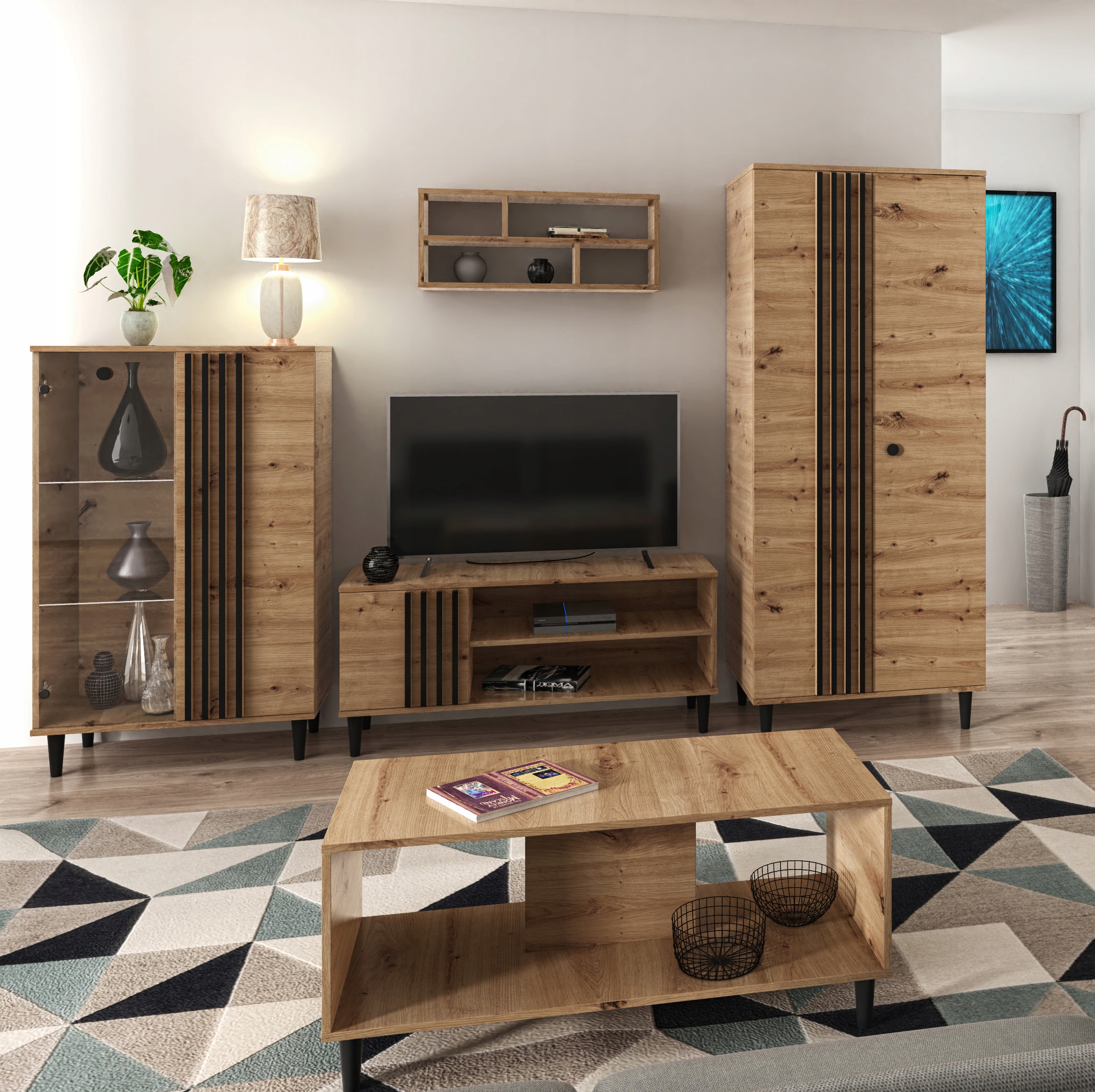 Zestaw mebli do salonu LUENA 2 Dąb Artisan lamele