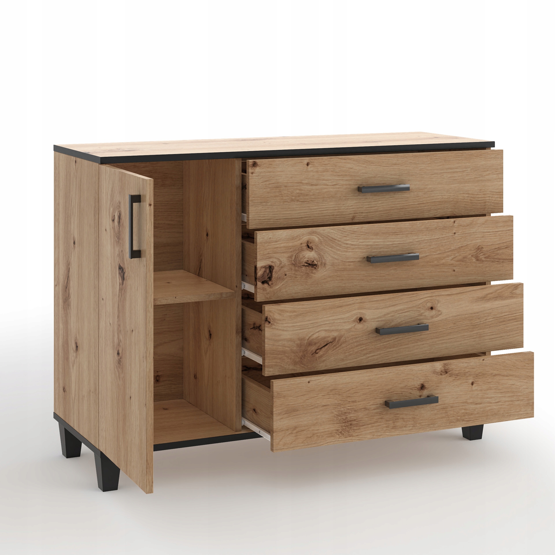 • dąb artisan + czarne wstawki