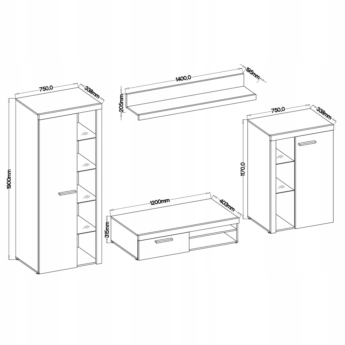 Zestaw mebli RIUS dąb sonoma lefkas old beton biały meblościanka kredens TV