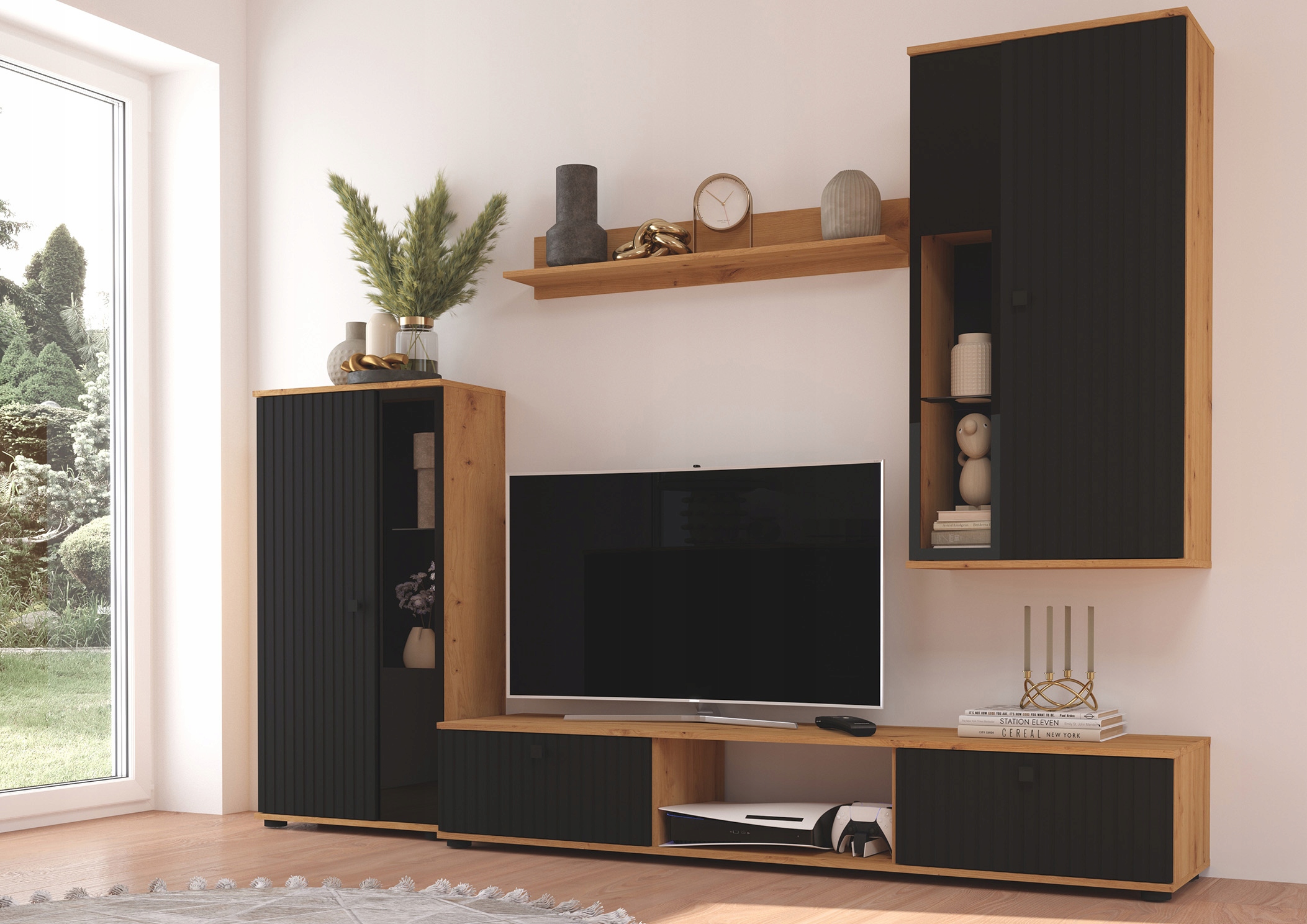 Zestaw mebli SILVO meblościanka lamele RTV dąb artisan matera kolory salon