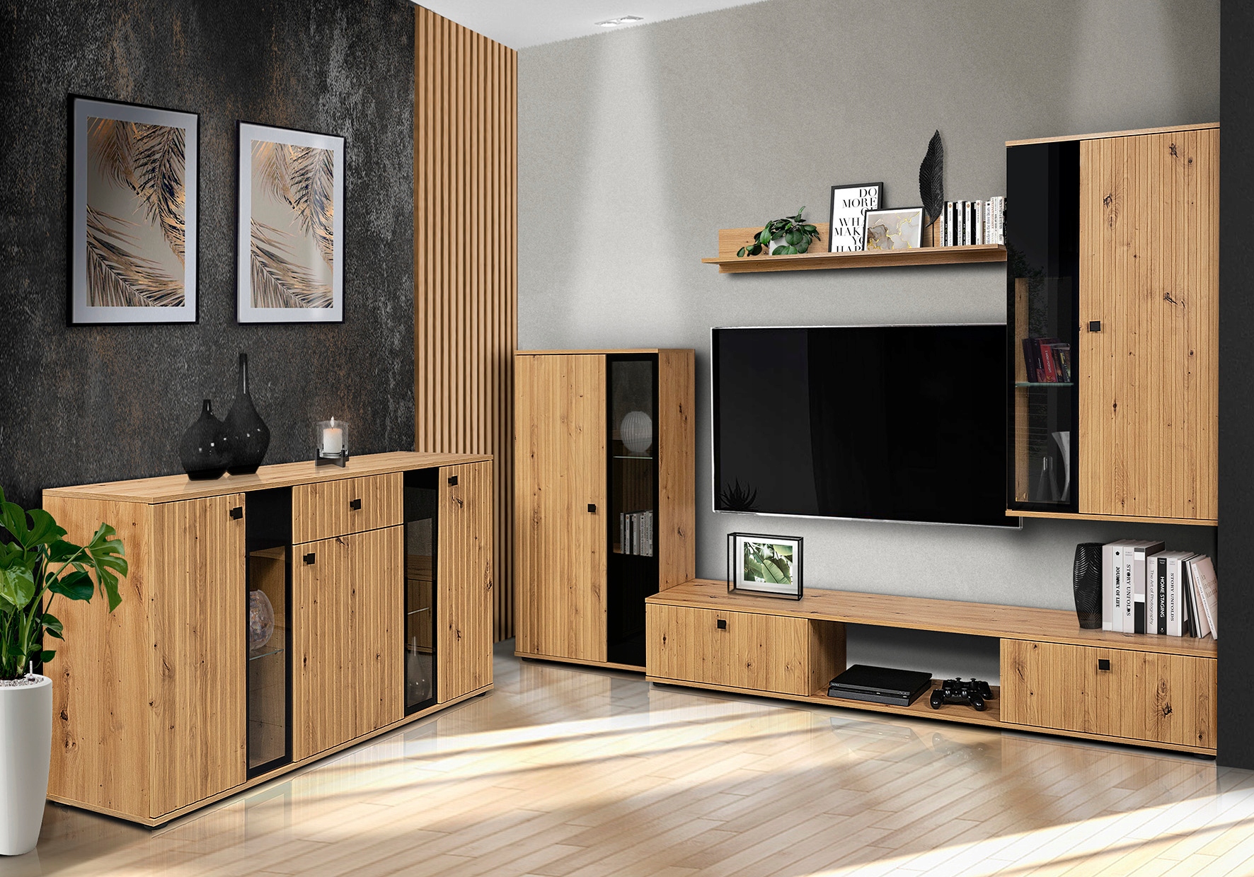 Zestaw mebli SILVO meblościanka lamele RTV dąb artisan matera komoda salon